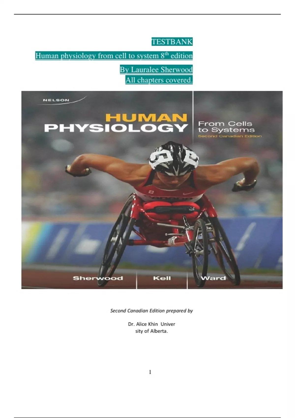 Test Bank prepared by Dr.Alice Khin, University of Alberta.