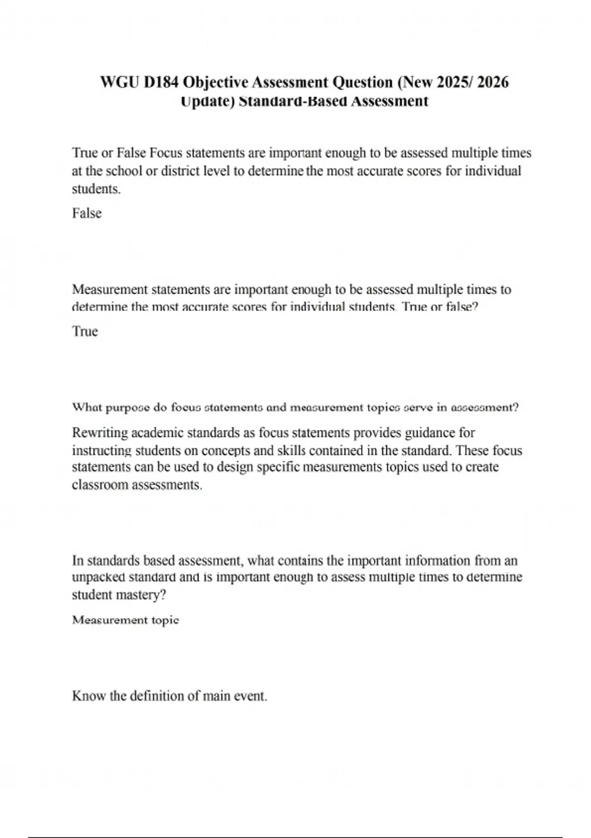 WGU D184 Objective Assessment