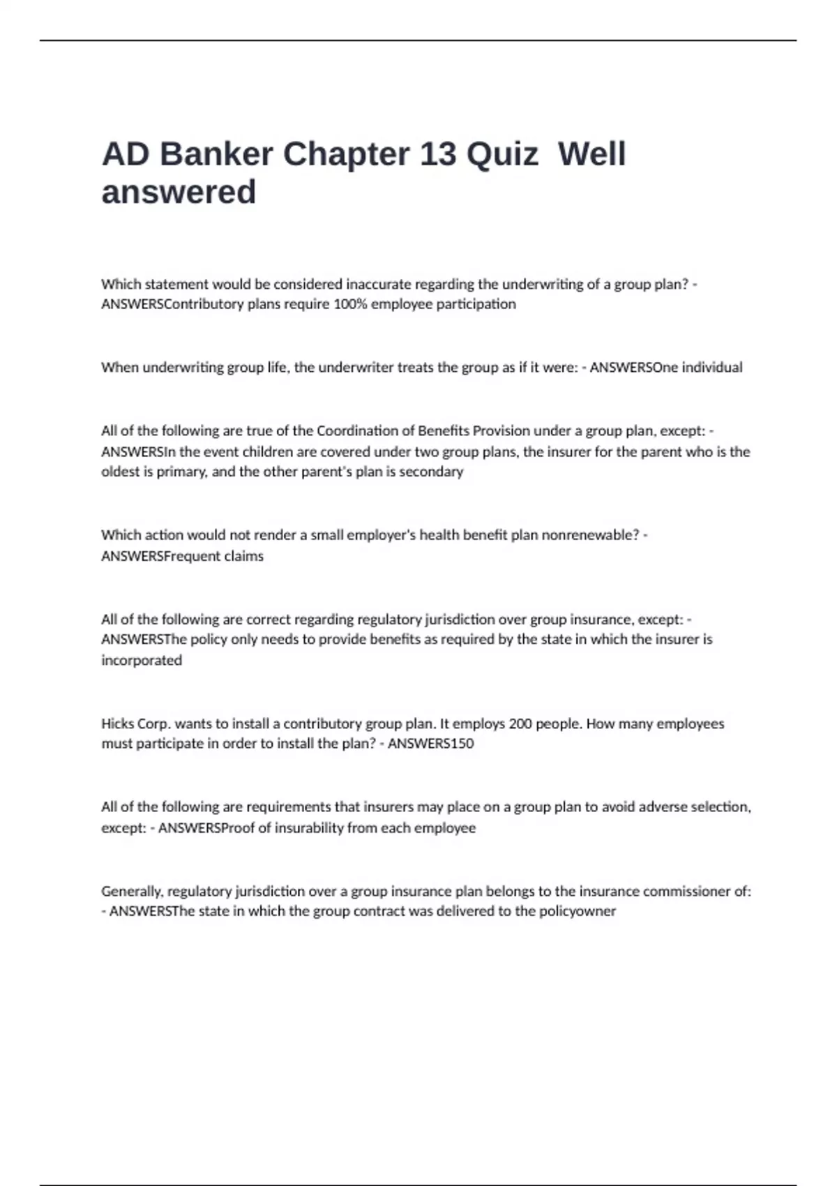 except: - ANSWERSProof of insurability from each employee