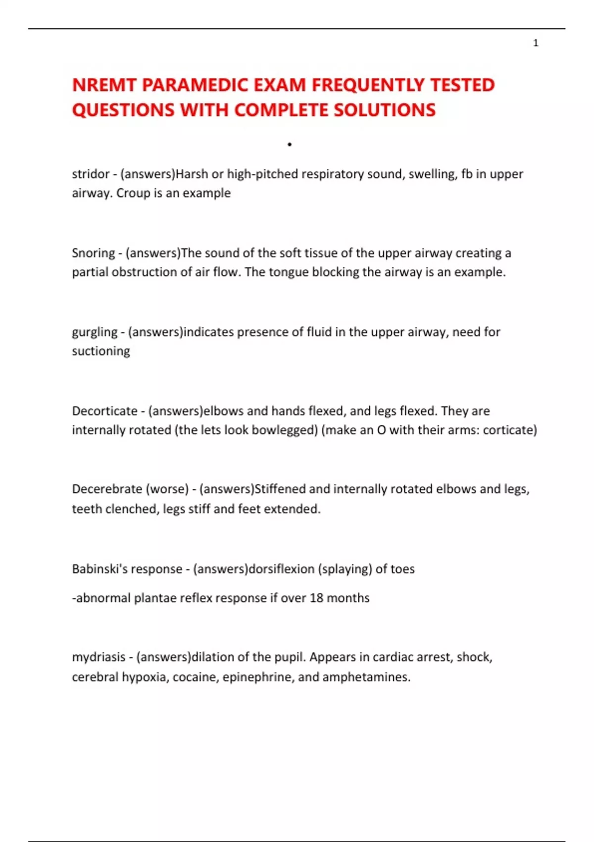 NREMT PARAMEDIC EXAM FREQUENTLY TESTED