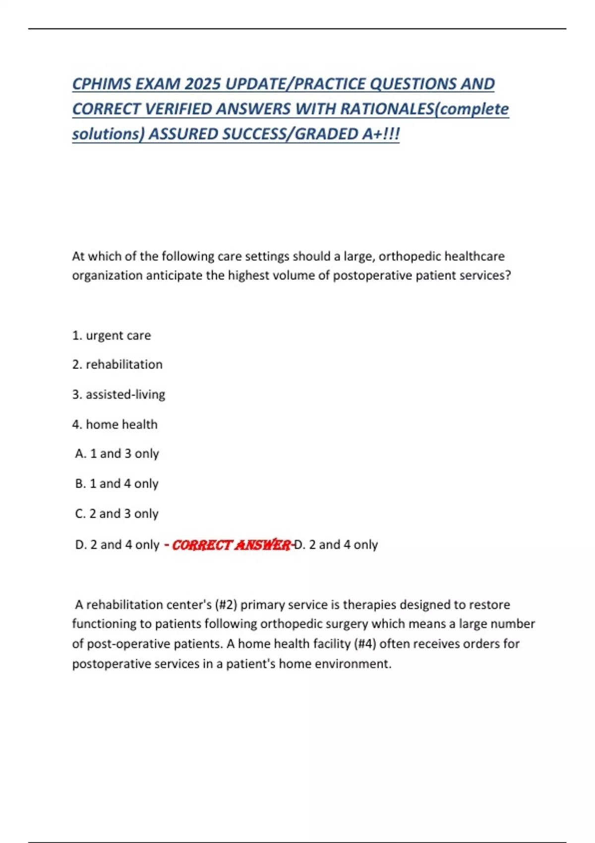 CORRECT VERIFIED ANSWERS WITH RATIONALES(complete