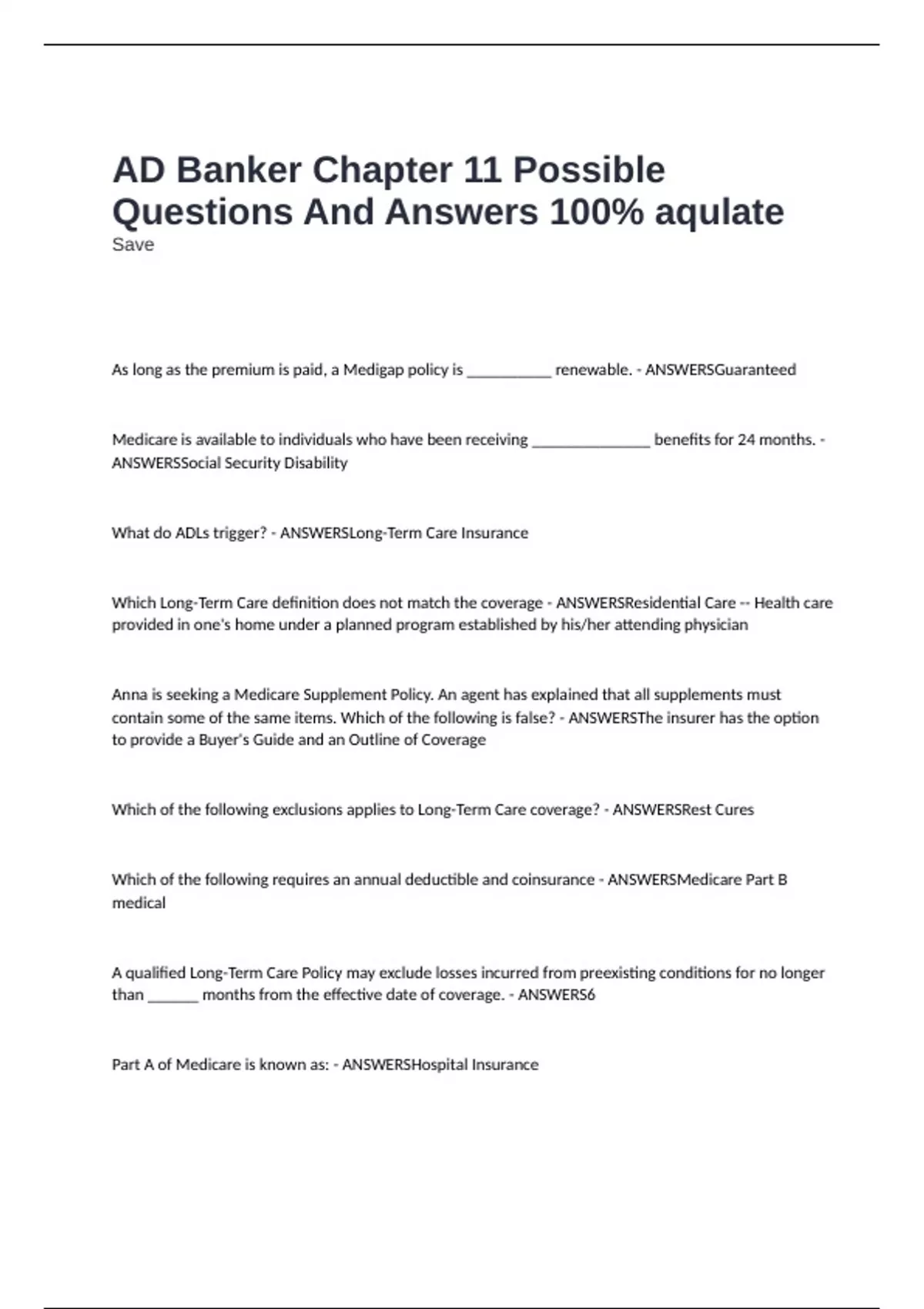 contain some of the same items. Which of the following is false? - ANSWERSThe insurer has the option