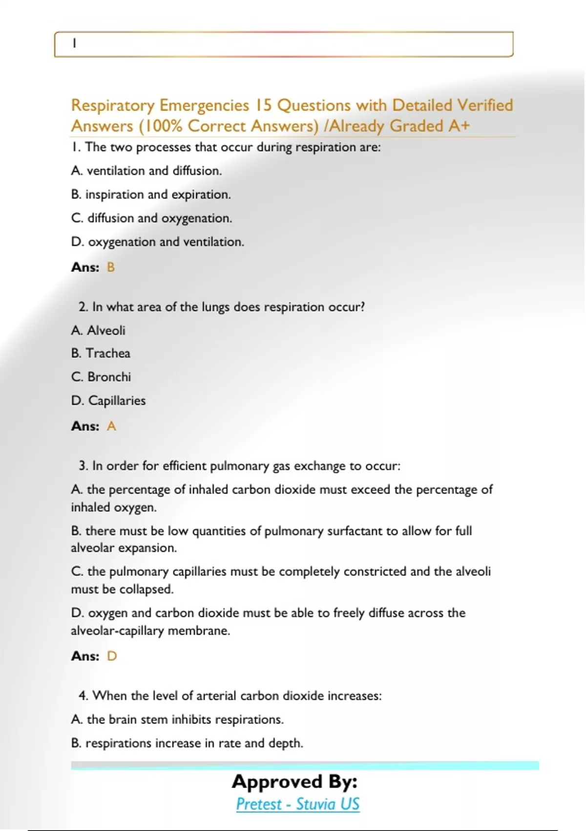 Respiratory Emergencies 15 Questions with Detailed Verified Answers (100% Correct Answers) /Already Graded A+Respiratory Emergencies 15 Questions with Detailed Verified Answers (100% Correct Answers) /Already Graded A+Respiratory Emergencies 15 Questions with Detailed Verified Answers (100% Correct Answers) /Already Graded A+