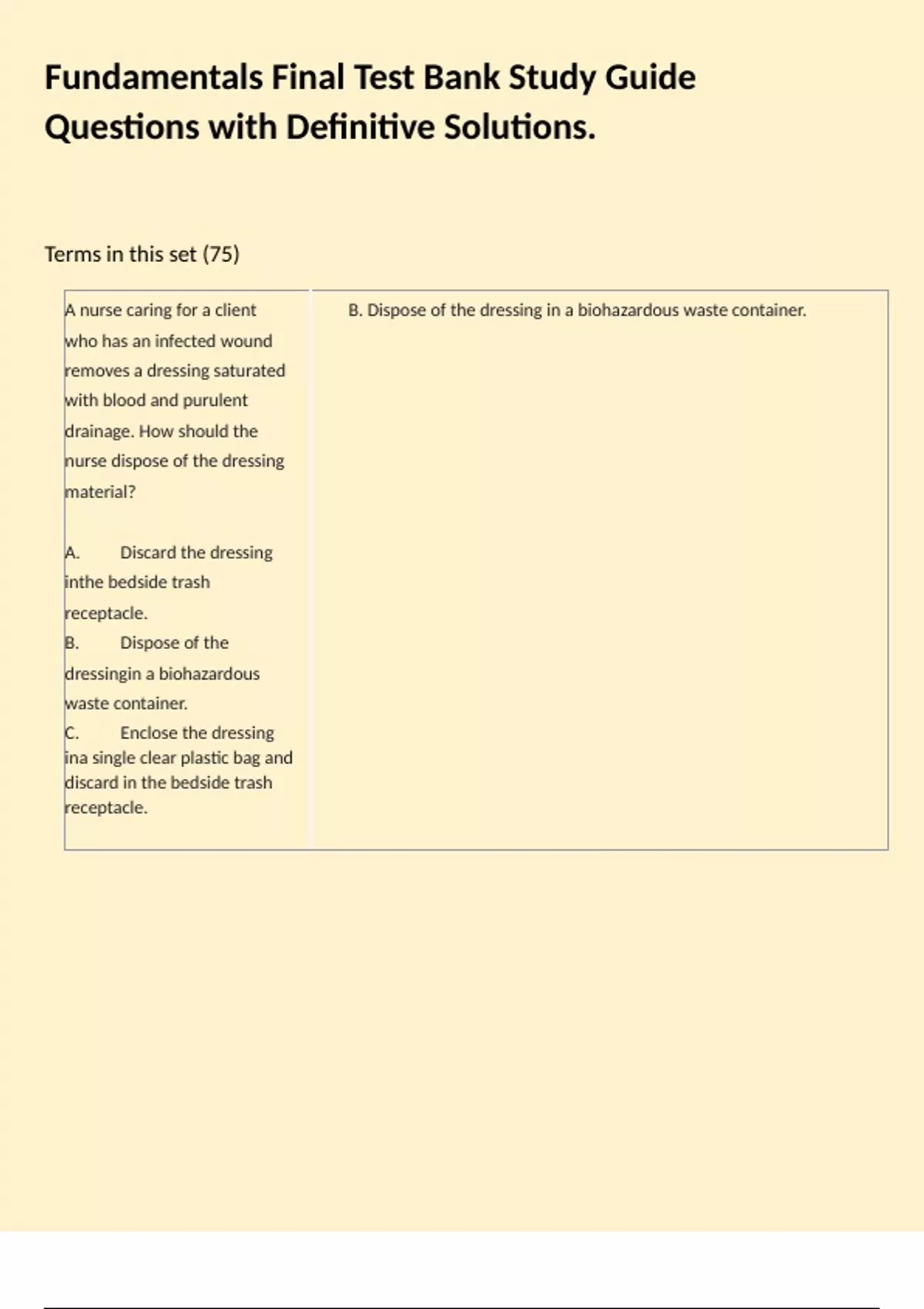 Fundamentals Final Test Bank Study Guide Questions with Definitive Solutions.