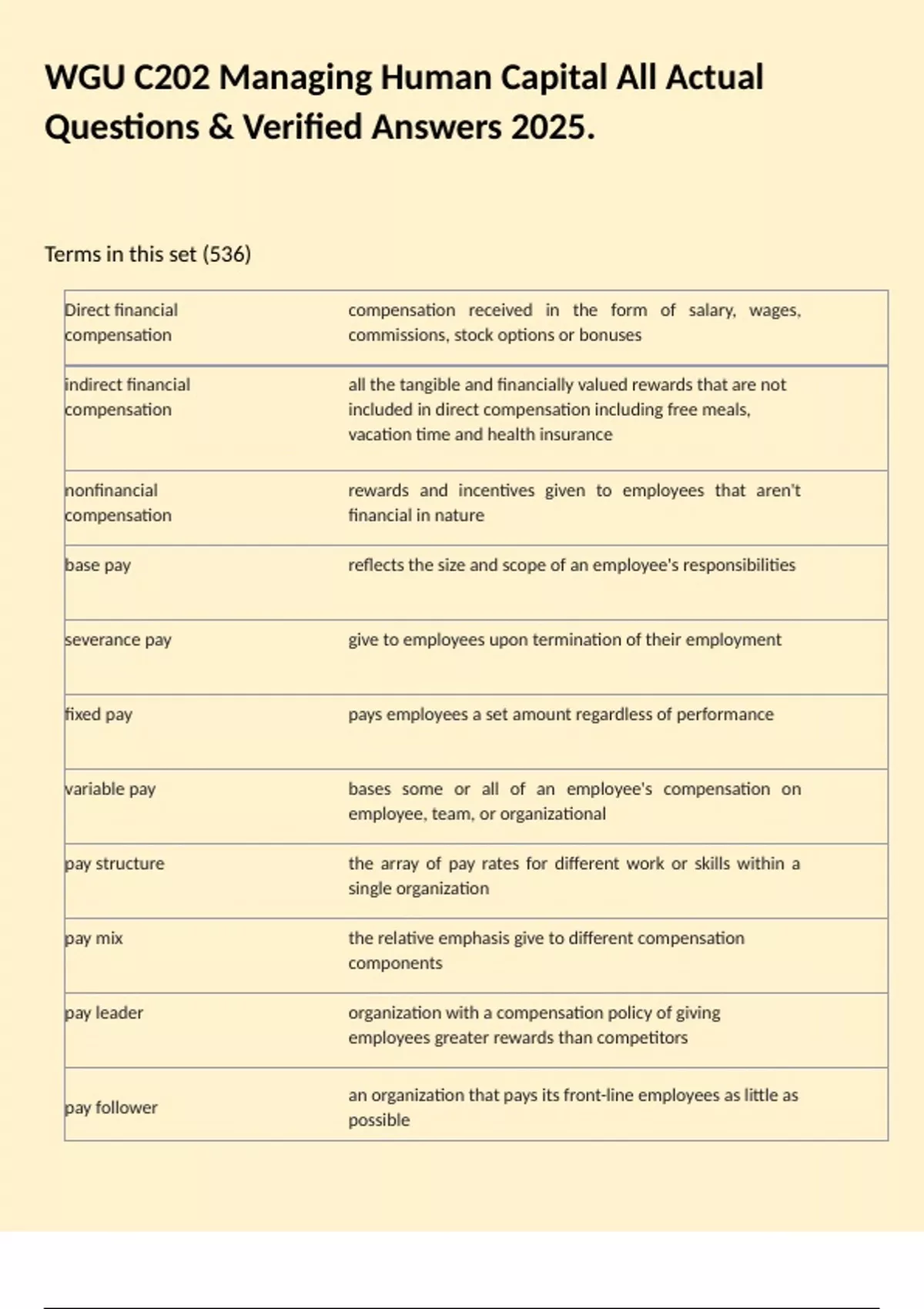 WGU C202 Managing Human Capital All Actual