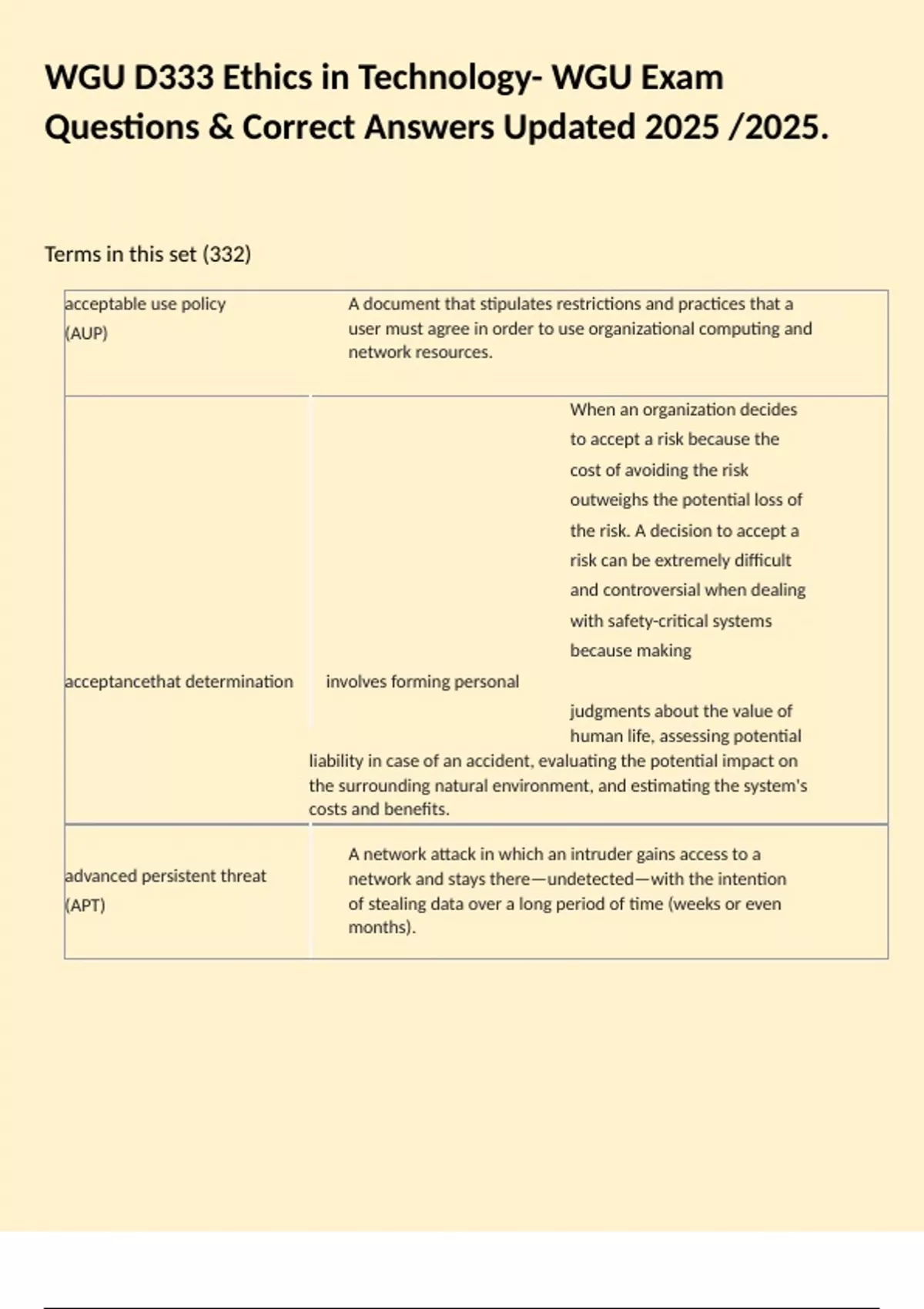 WGU D333 Ethics in Technology- WGU Exam