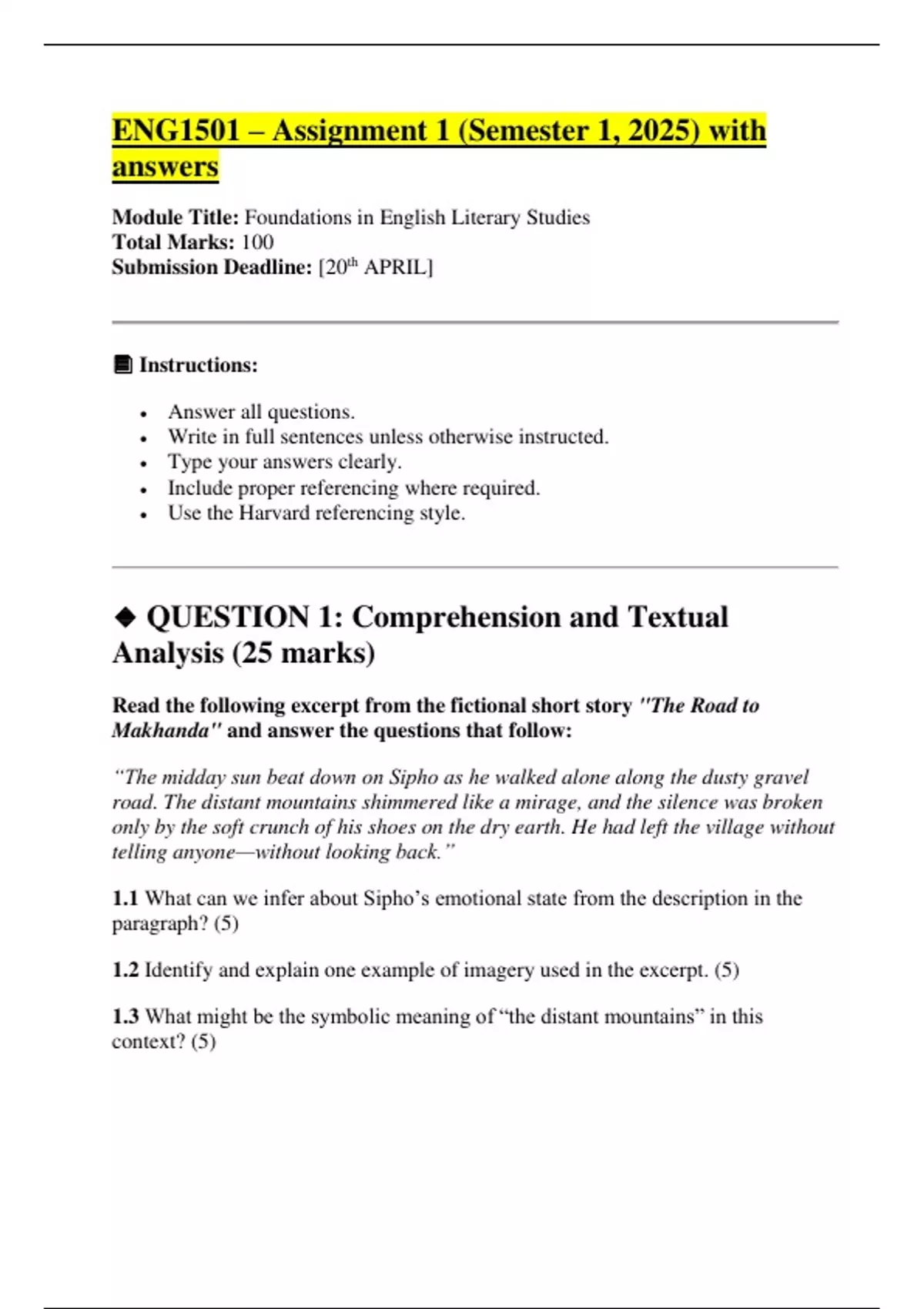 ENG1501 – Assignment 1 (Semester 1, 2025) with