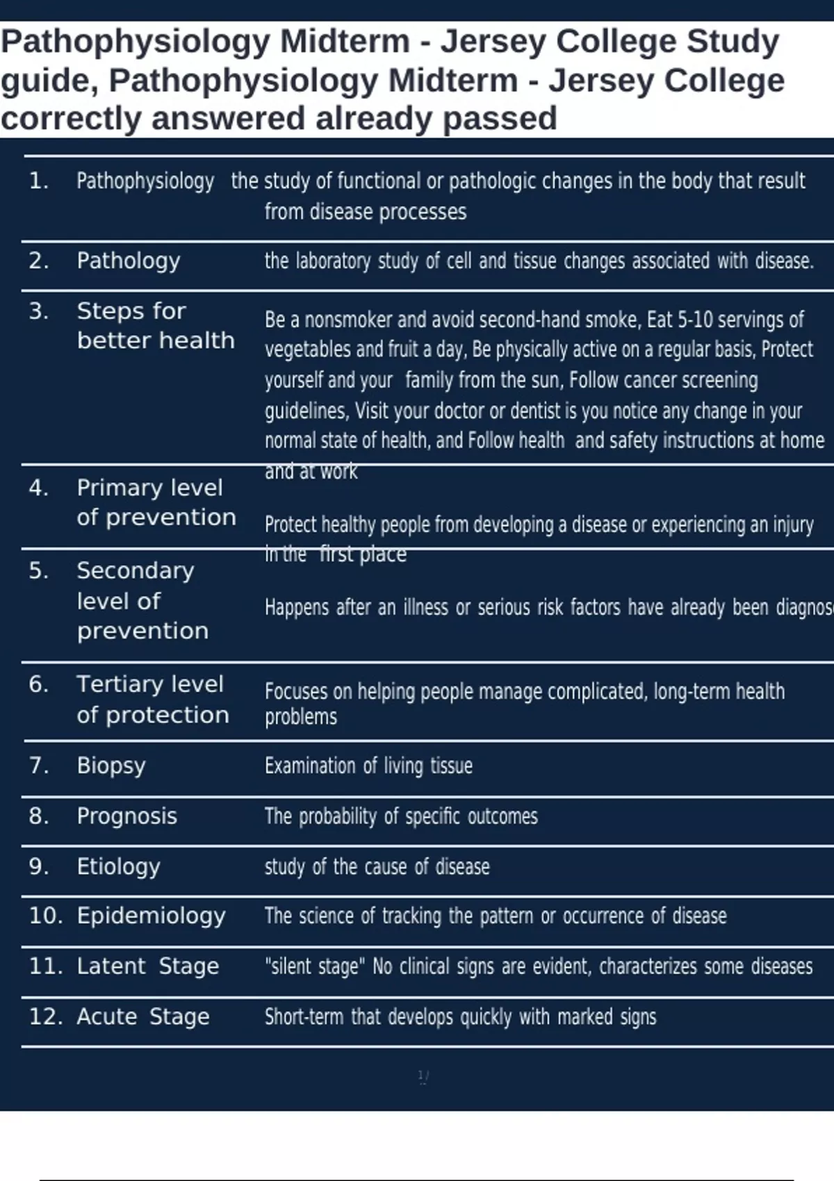 guide, Pathophysiology Midterm - Jersey College