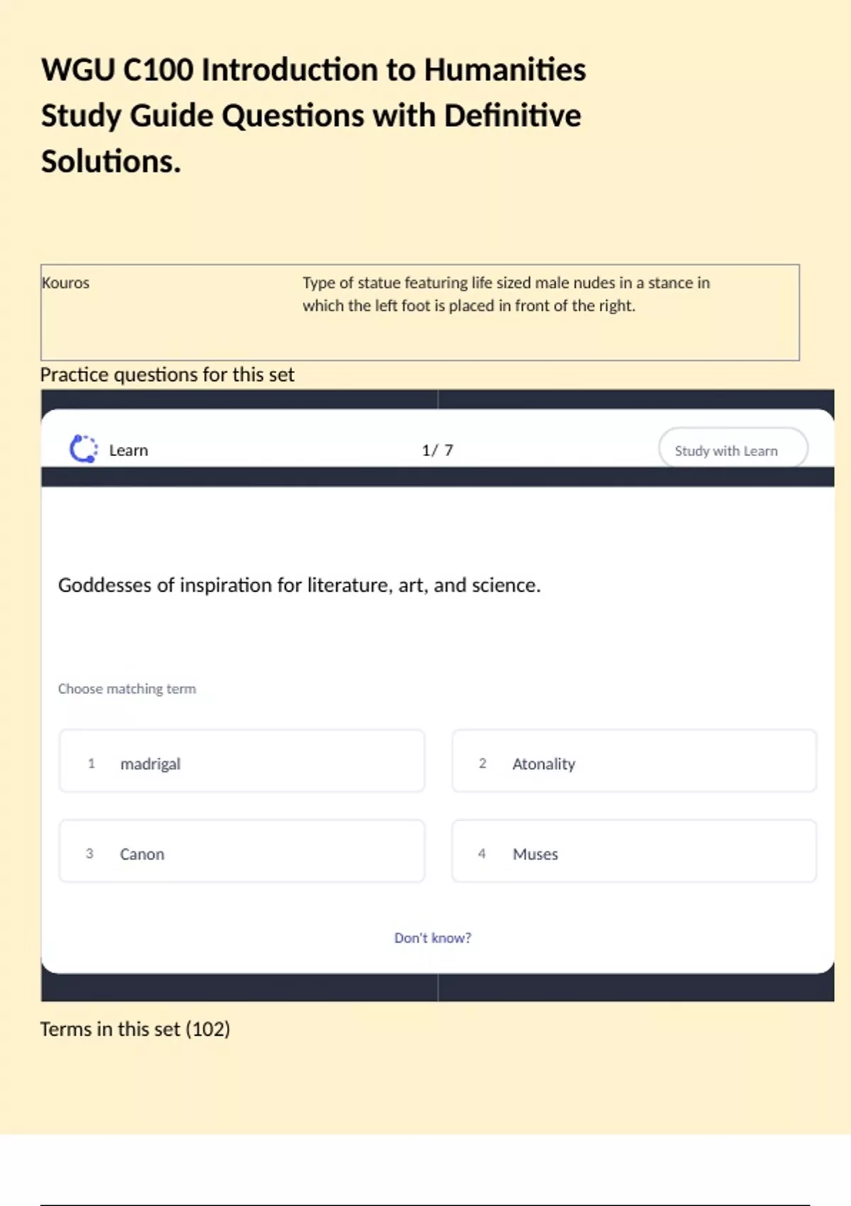 WGU C100 Introduction to Humanities Study Guide Questions with Definitive Solutions.