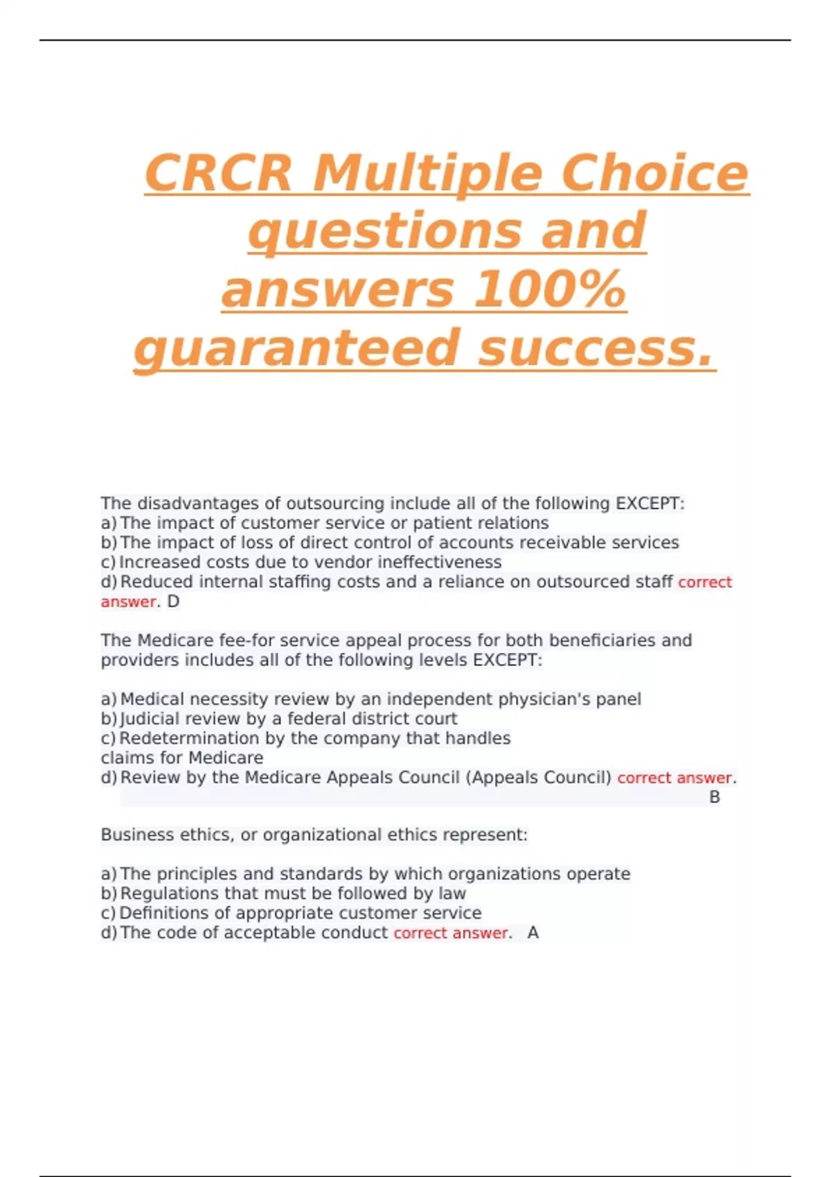 CRCR Multiple Choice questions and answers 100% guaranteed success.