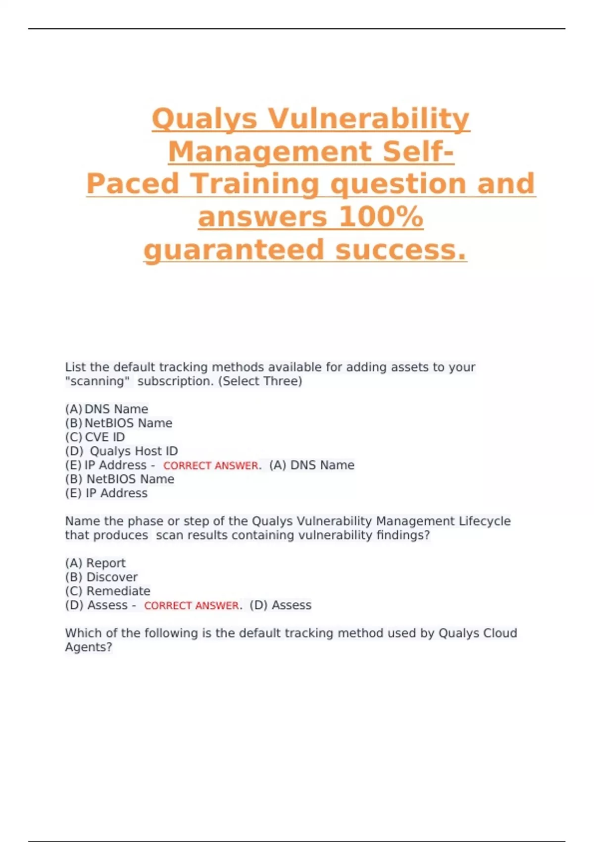 (D) NetBIOS Name - CORRECT ANSWER. (B) Qualys Host ID
