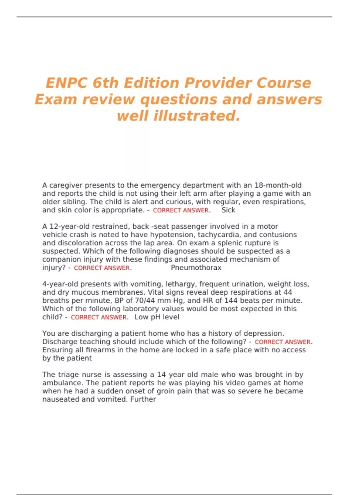 ENPC 6th Edition Provider Course Exam review questions and answers well illustrated.