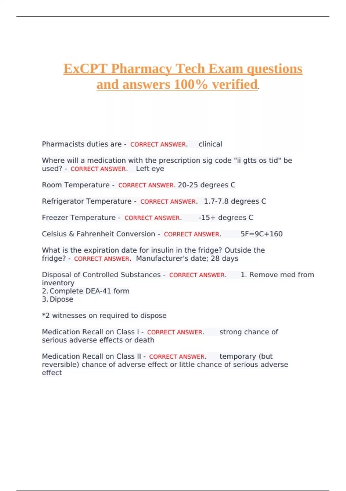ExCPT Pharmacy Tech Exam questions and answers 100% verified.