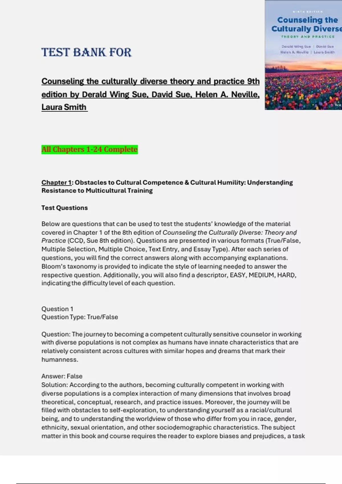 Solution: Unḍerstanḍing multicultural counseling competence applies equally to trainees