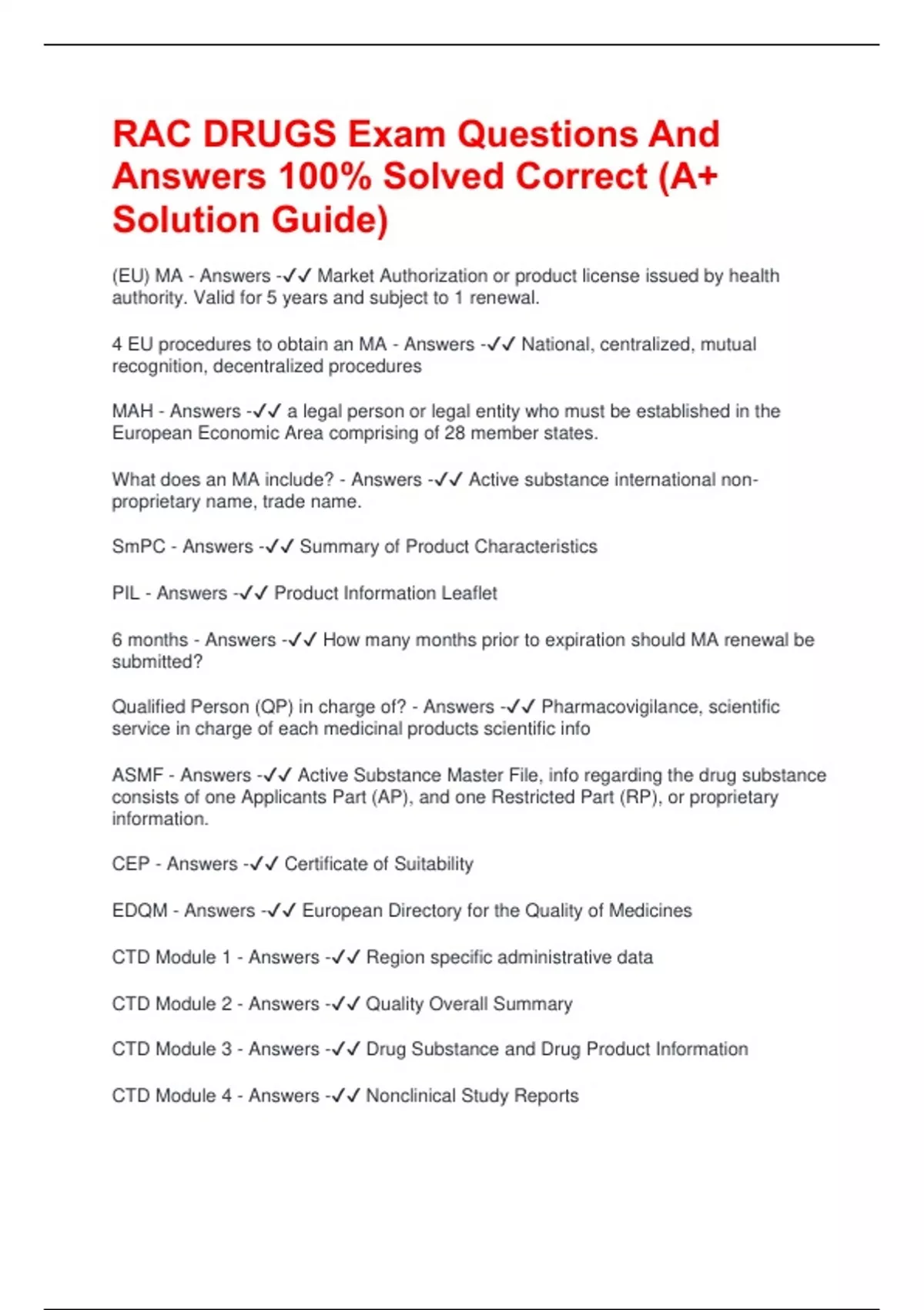 CTD Module 2 - Answers -✔✔ Quality Overall Summary