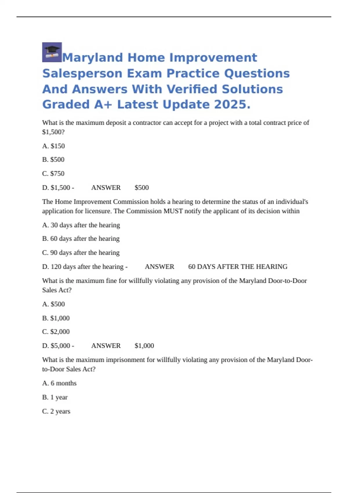 D. 5 years - ANSWER 1 YEAR