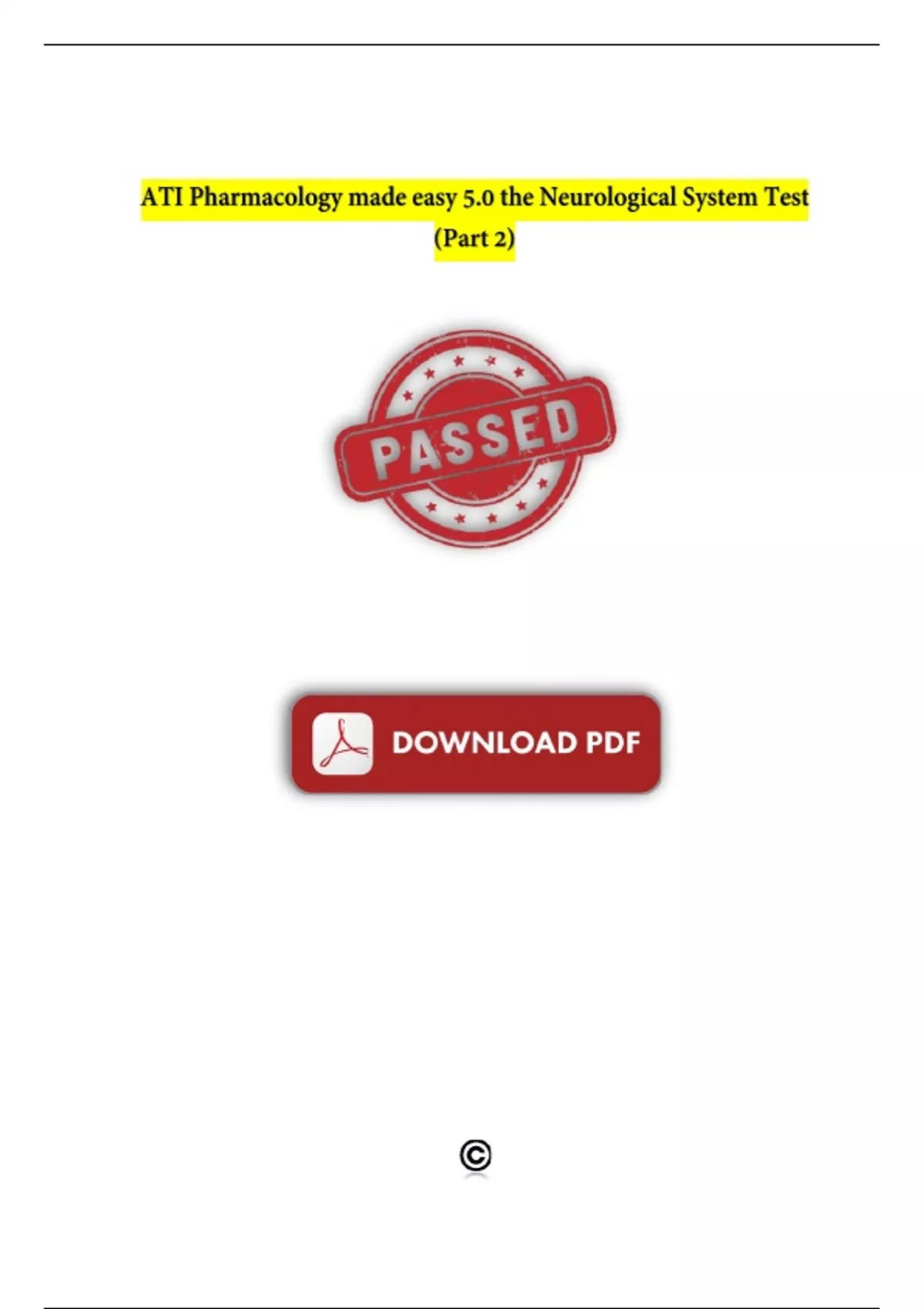 ATI Pharmacology made easy 5.0 the Neurological System Test (Part 2) || Latest Update 2025