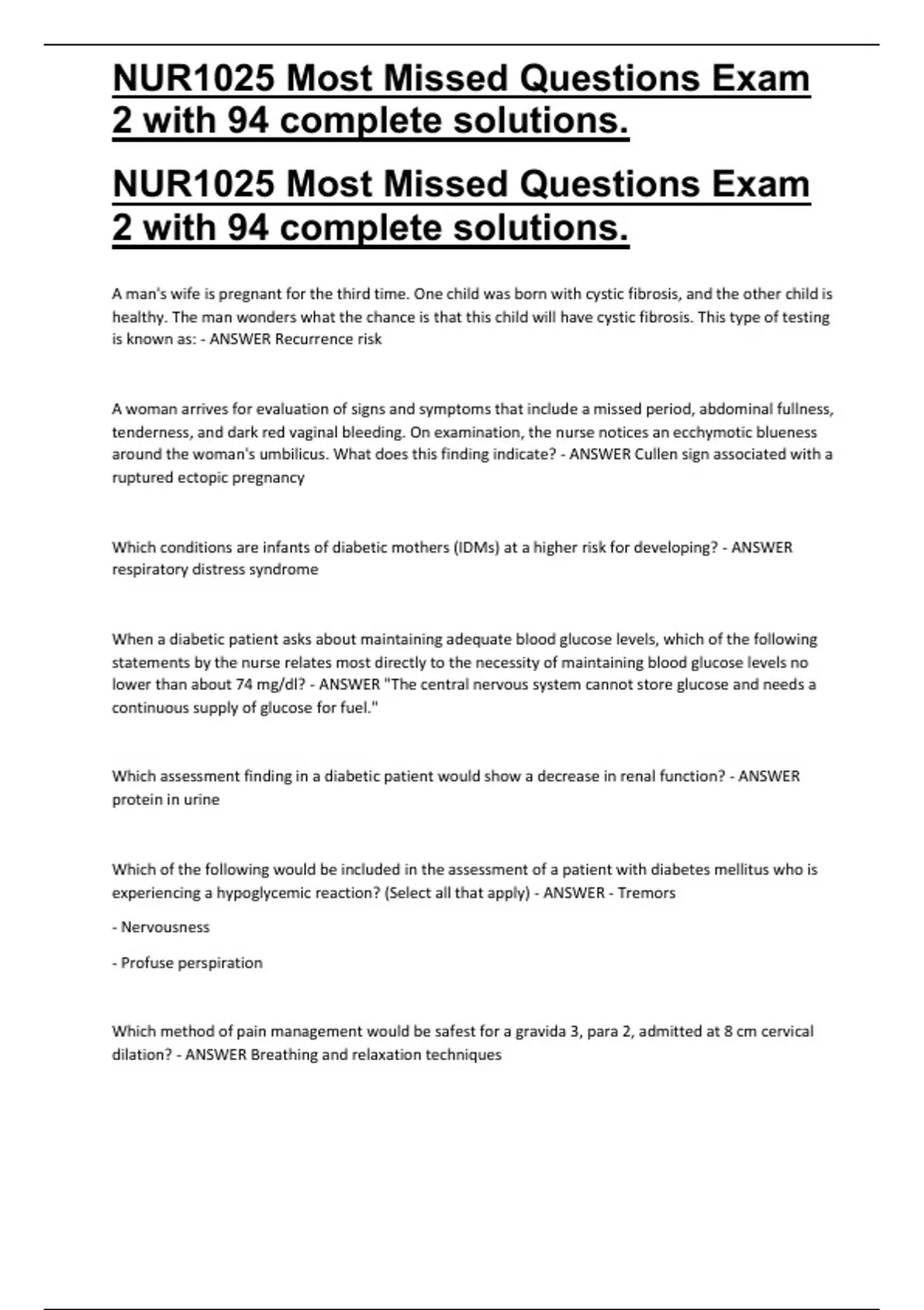 NUR1025 Most Missed Questions Exam 2 with 94 complete solutions. NUR1025 Most Missed Questions Exam 2 with 94 complete solutions. NUR1025 Most Missed Questions Exam 2 with 94 complete solutions. NUR1025 Most Missed Questions Exam 2 with 94 complete solutions. NUR1025 Most Missed Questions Exam 2 with 94 complete solutions. NUR1025 Most Missed Questions Exam 2 with 94 complete solutions.