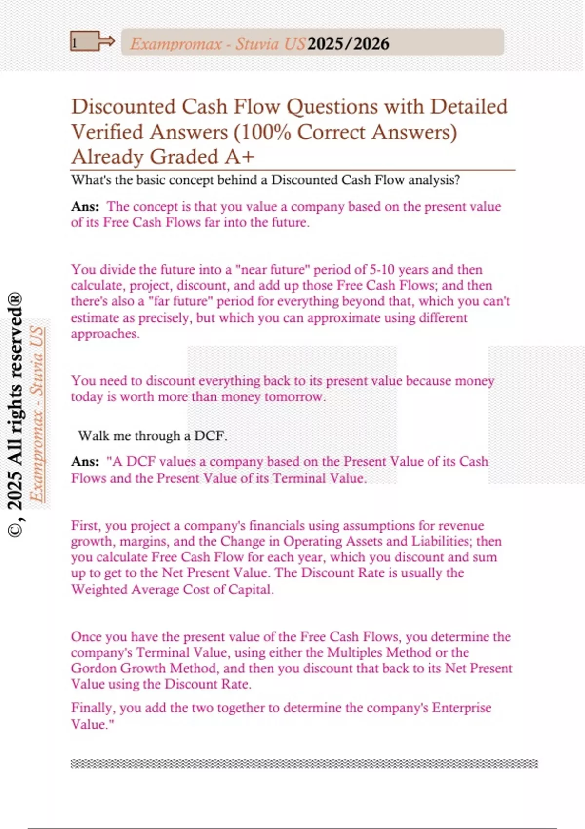 Discounted Cash Flow Questions with Detailed Verified Answers (100% Correct Answers) Already Graded A+Discounted Cash Flow Questions with Detailed Verified Answers (100% Correct Answers) Already Graded A+Discounted Cash Flow Questions with Detailed Verified Answers (100% Correct Answers) Already Graded A+