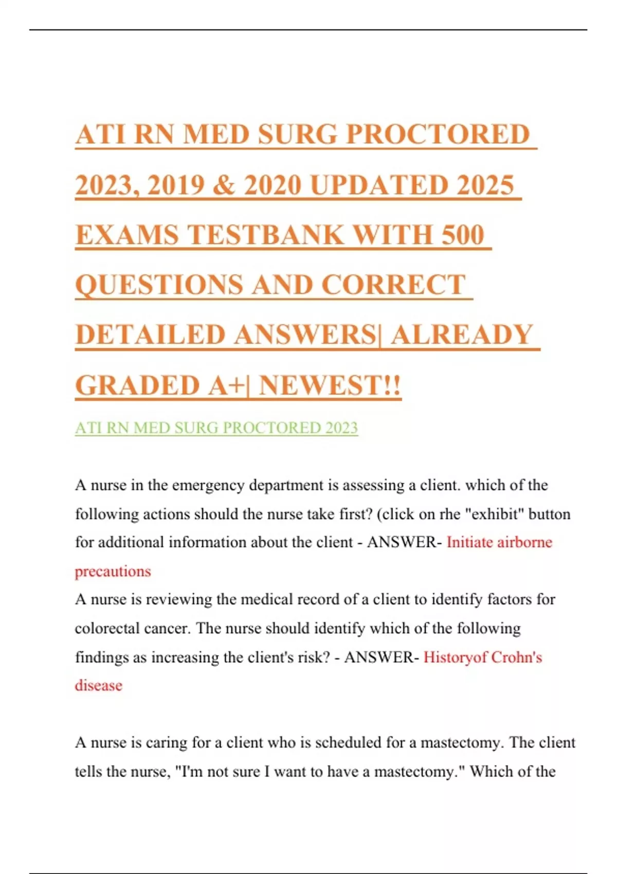 ATI RN MED SURG PROCTORED 2023