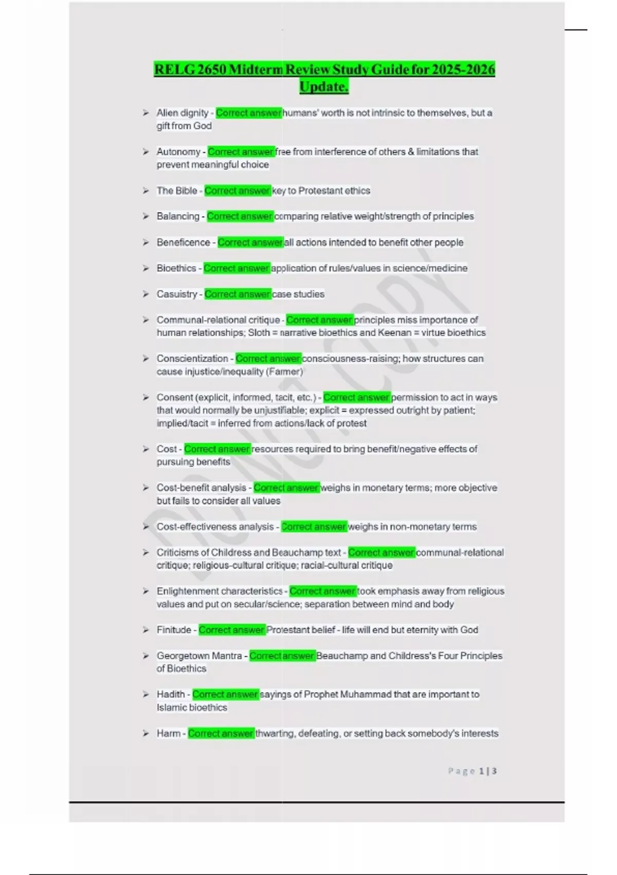 RELG 2650 Midterm Review Study Guide for Update.