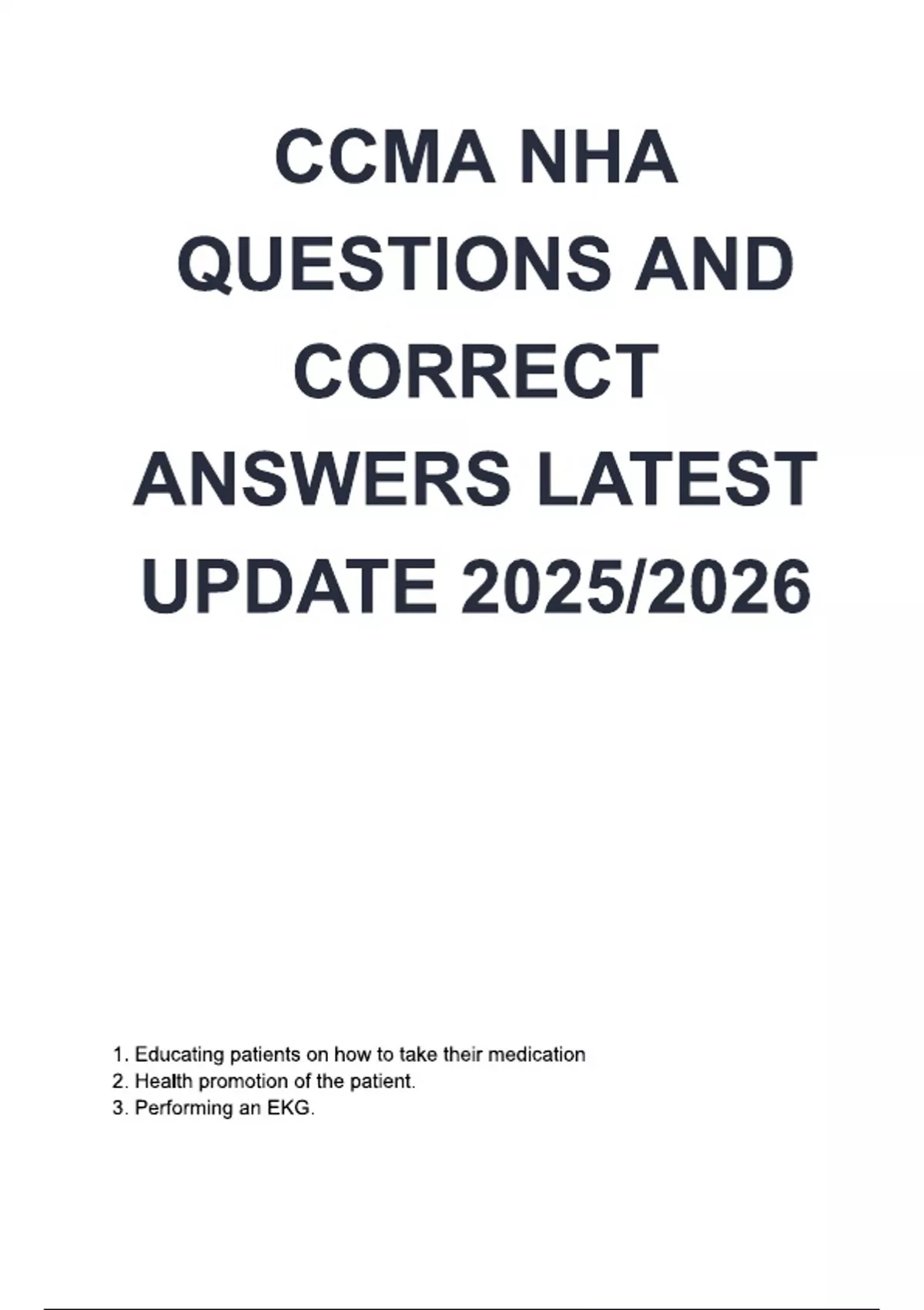 CCMA NHA EXAM QUESTIONS AND CORRECT ANSWERS LATEST UPDATE 2025