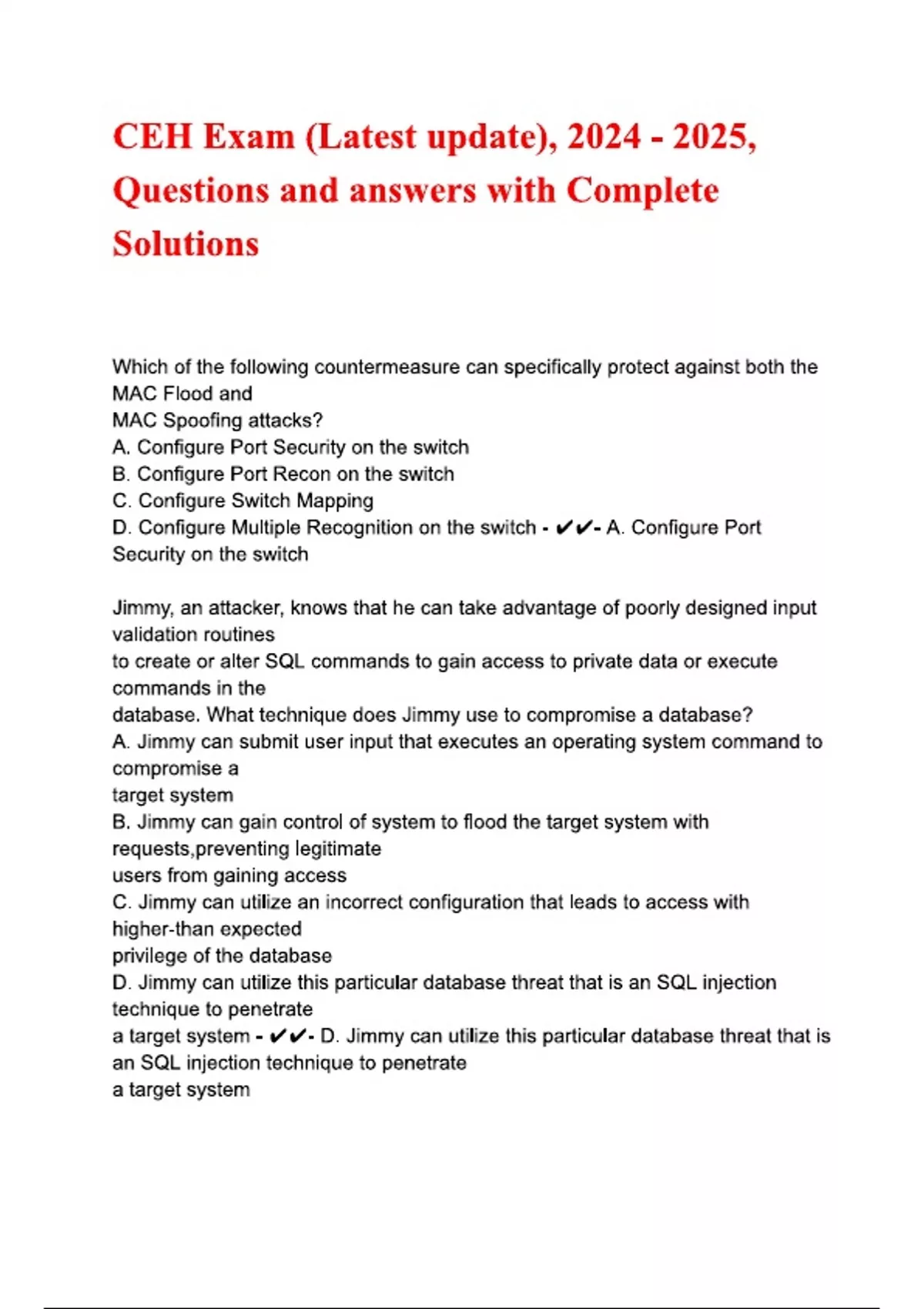 CEH Exam (Latest 2025 / 2026 Update) Questions and Verified Answers| 100% Correct | Grade A+.