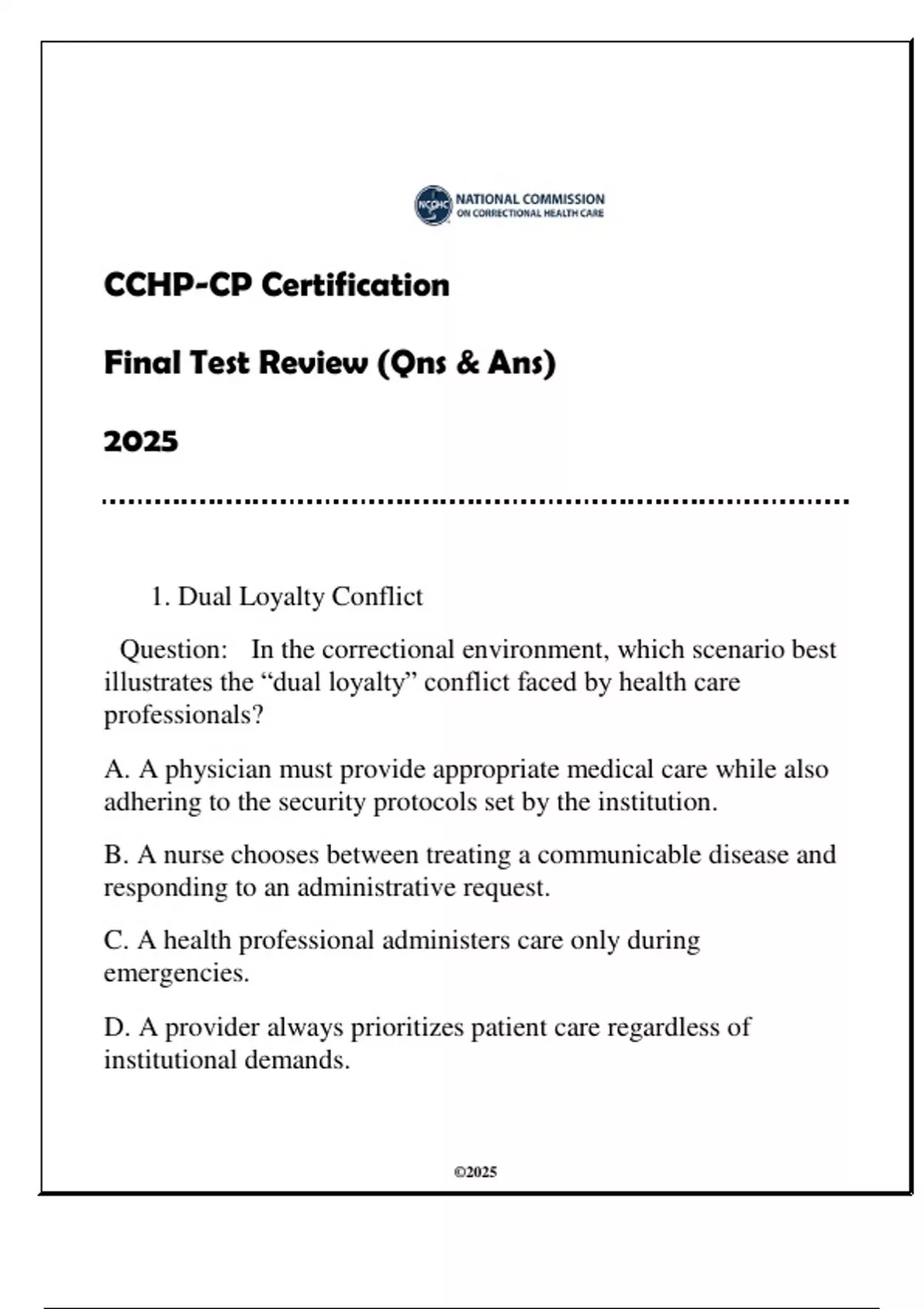 NCCHC-CP CCHP Certification Final Test Review 2025 (Qns & Ans)