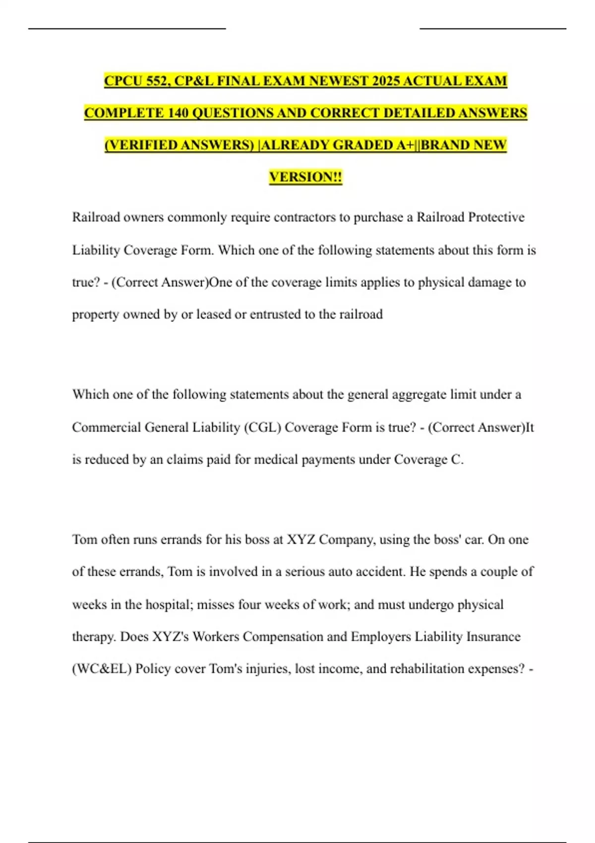 COMPLETE 140 QUESTIONS AND CORRECT DETAILED ANSWERS