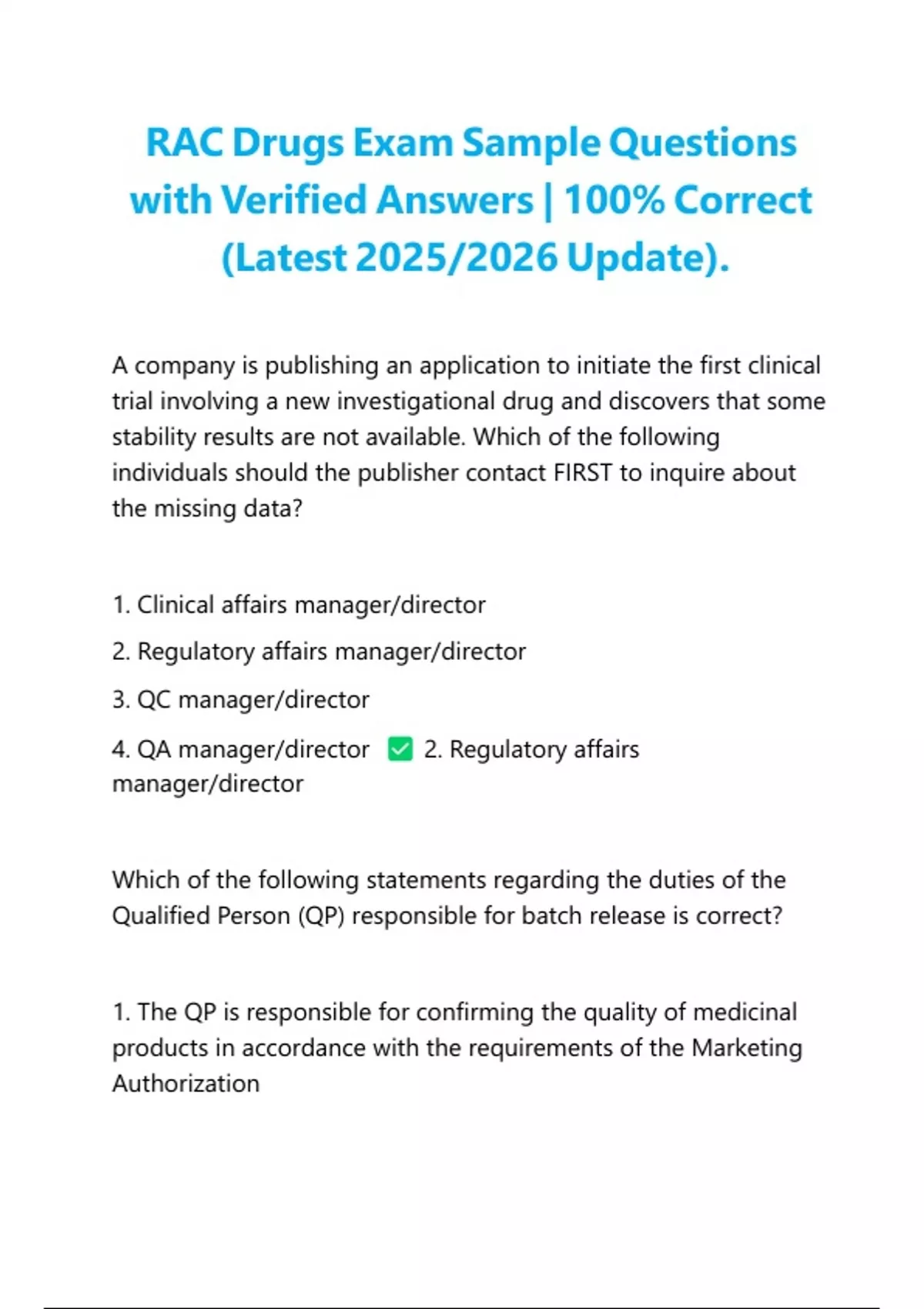 2. Regulatory affairs manager/director