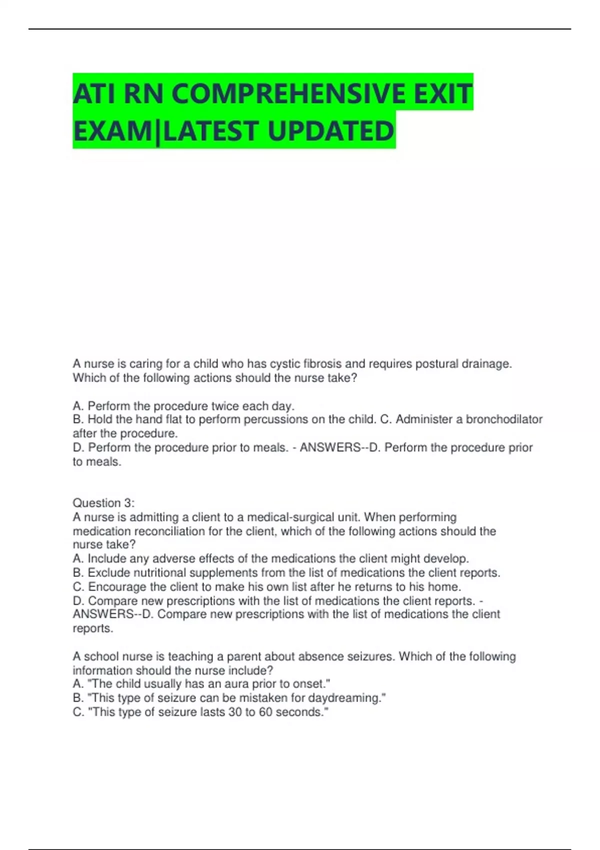 ANSWERS--D. Compare new prescriptions with the list of medications the client
