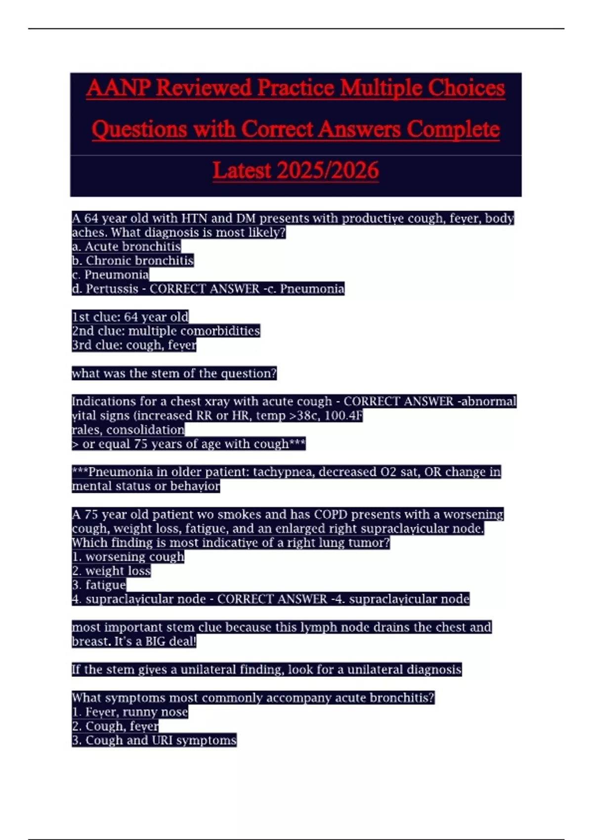 AANP Reviewed Practice Multiple Choices Questions with Correct Answers Complete Latest 2025/2026 AANP Reviewed Practice Multiple Choices Questions with Correct Answers Complete Latest 2025/2026 AANP Reviewed Practice Multiple Choices Questions with Correct Answers Complete Latest 2025/2026 AANP Reviewed Practice Multiple Choices Questions with Correct Answers Complete Latest 2025/2026