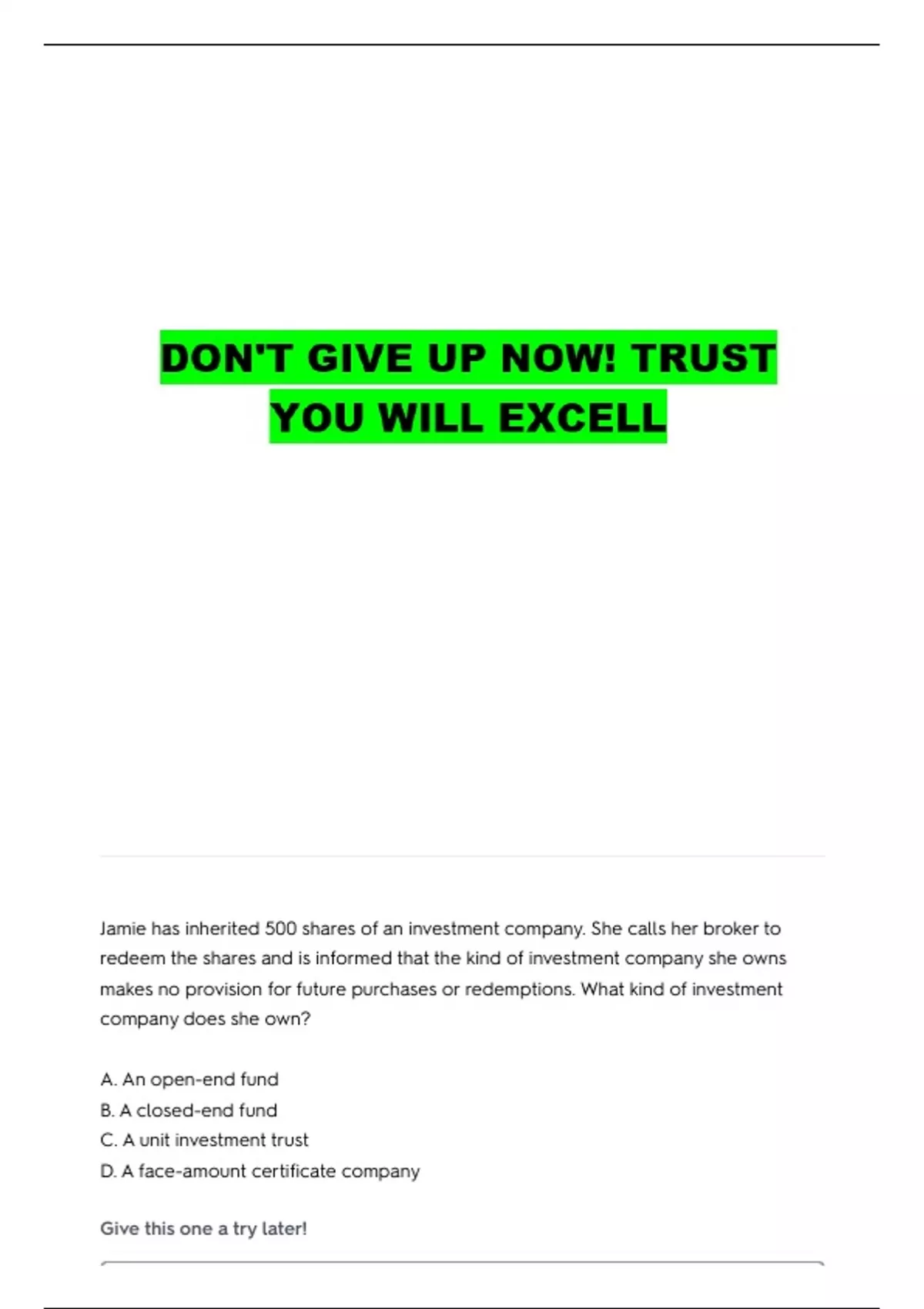 Jamie has inherited 500 shares of an investment company. She calls her broker to