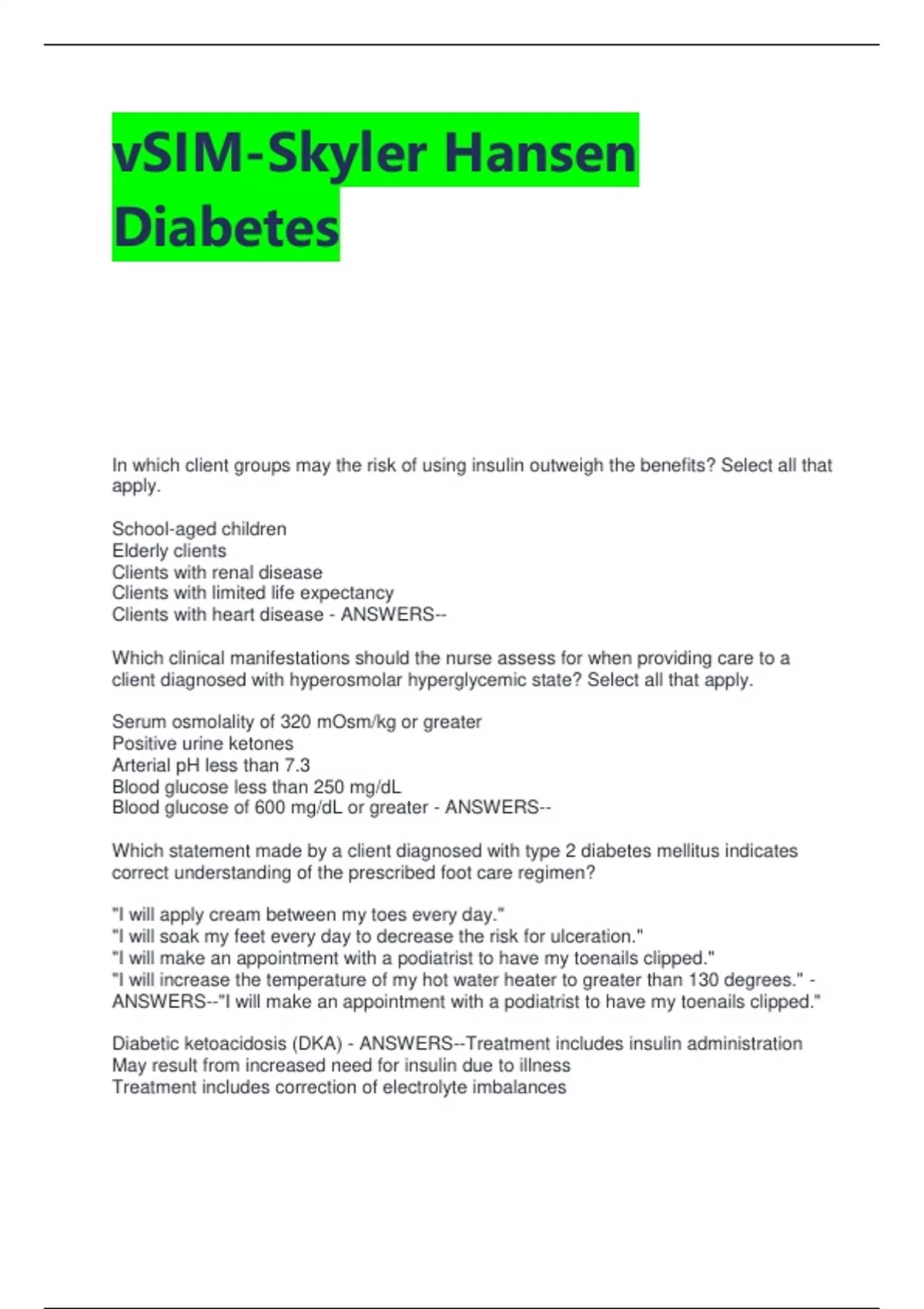 Diabetic ketoacidosis (DKA) - ANSWERS--Treatment includes insulin administration