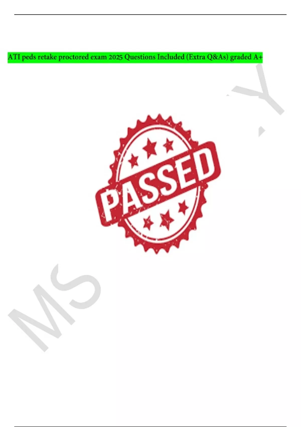 ATI peds retake proctored exam 2025 Questions Included (Extra Q&As) graded A+