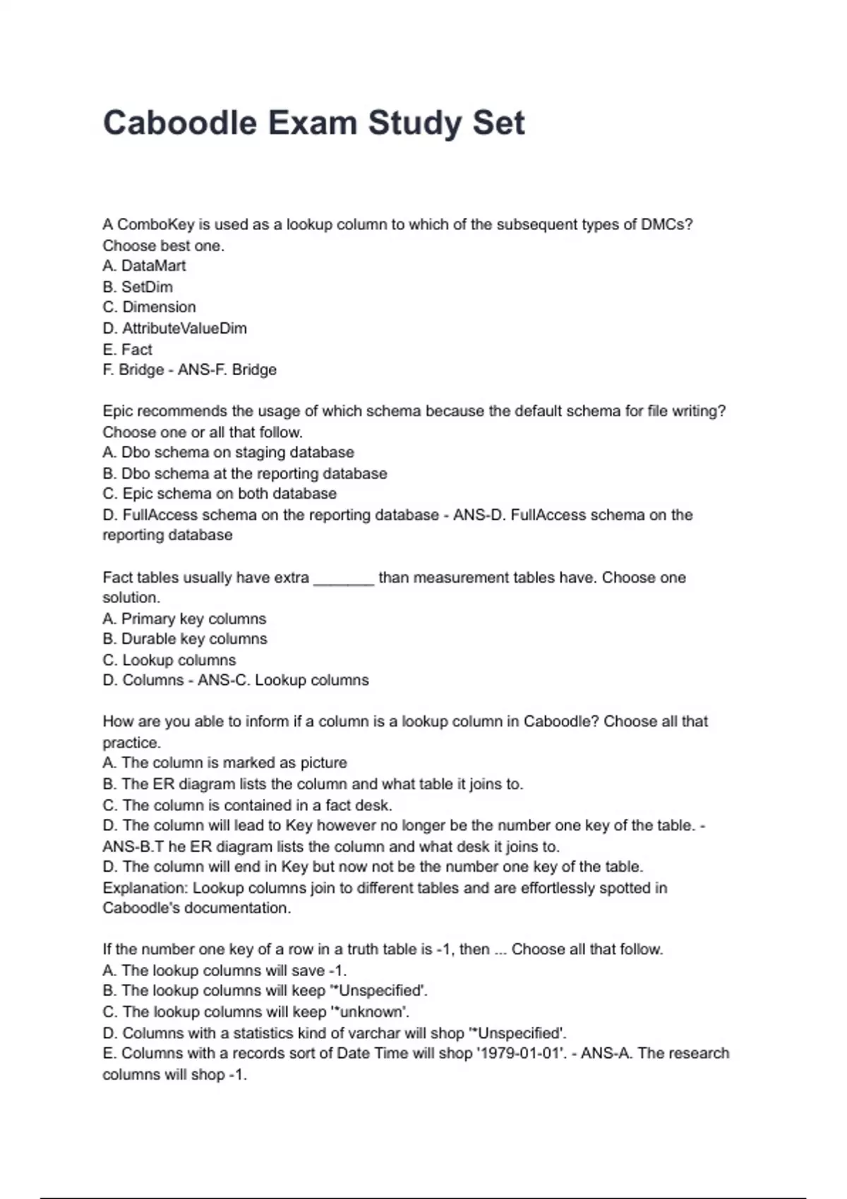 E. Columns with a records sort of Date Time will shop '1979-01-01'. - ANS-A. The research