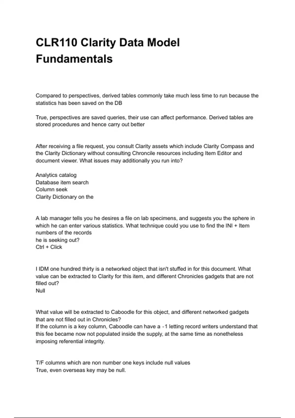 the Clarity Dictionary without consulting Chroncile resources including Item Editor and
