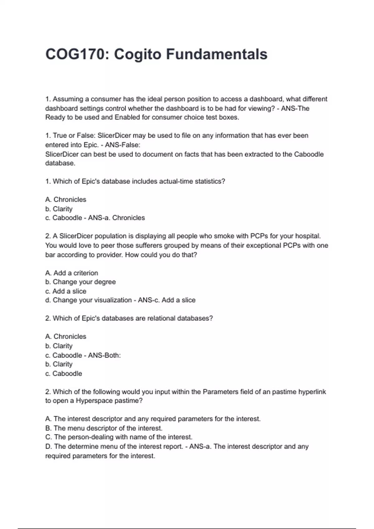 entered into Epic. - ANS-False: