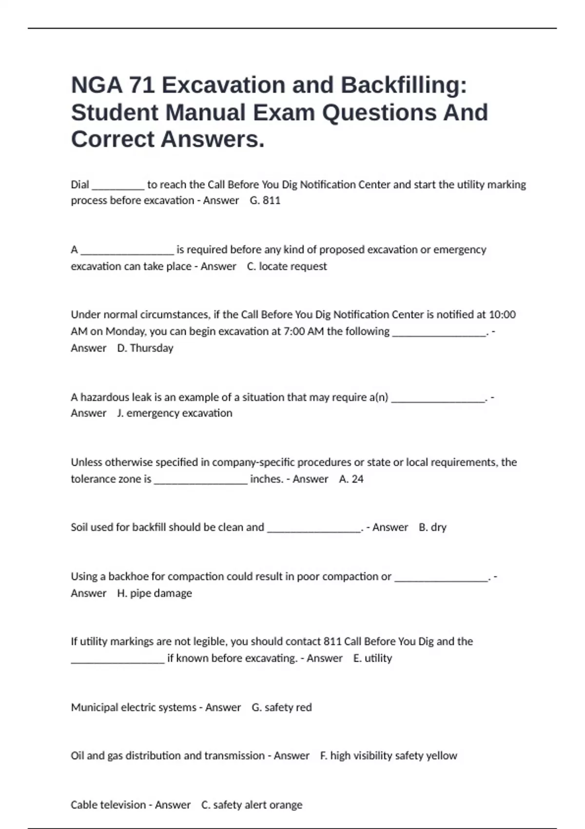process before excavation - Answer G. 811