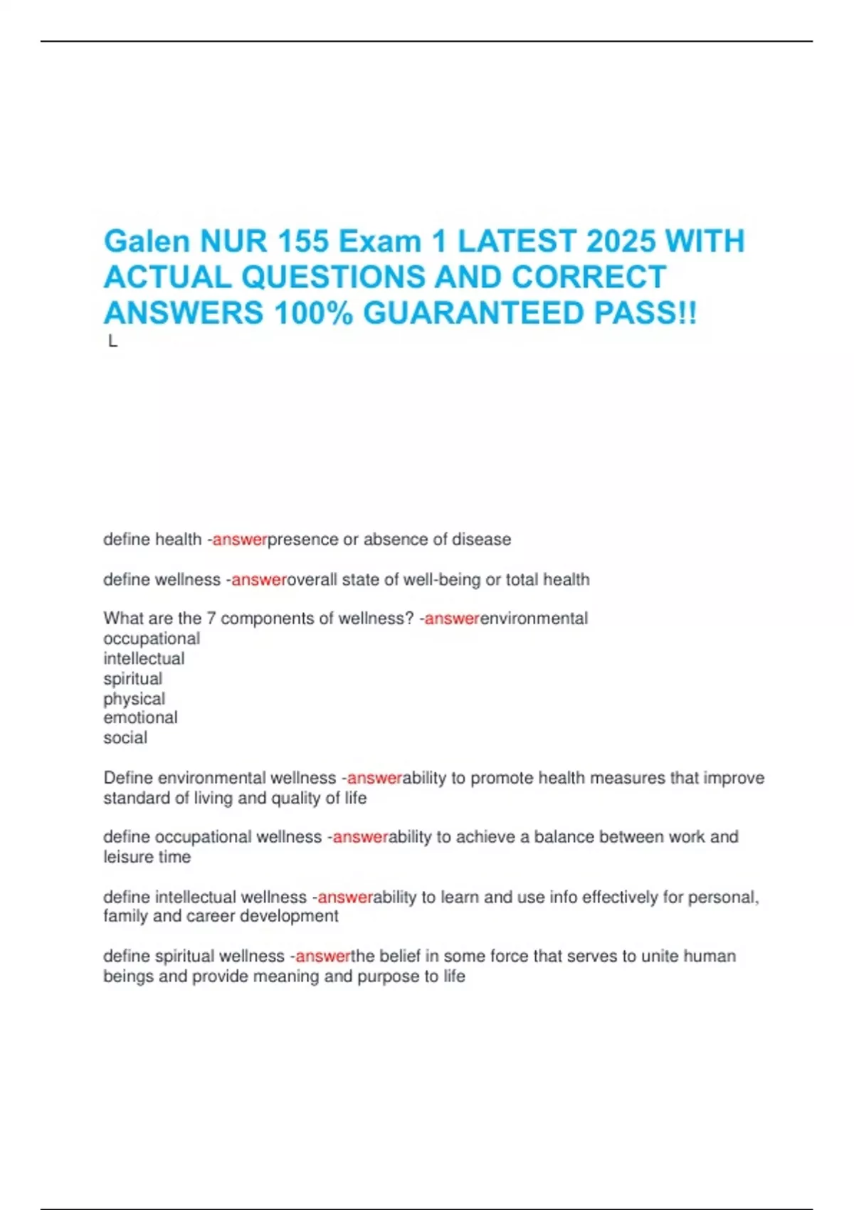 define spiritual wellness -answerthe belief in some force that serves to unite human