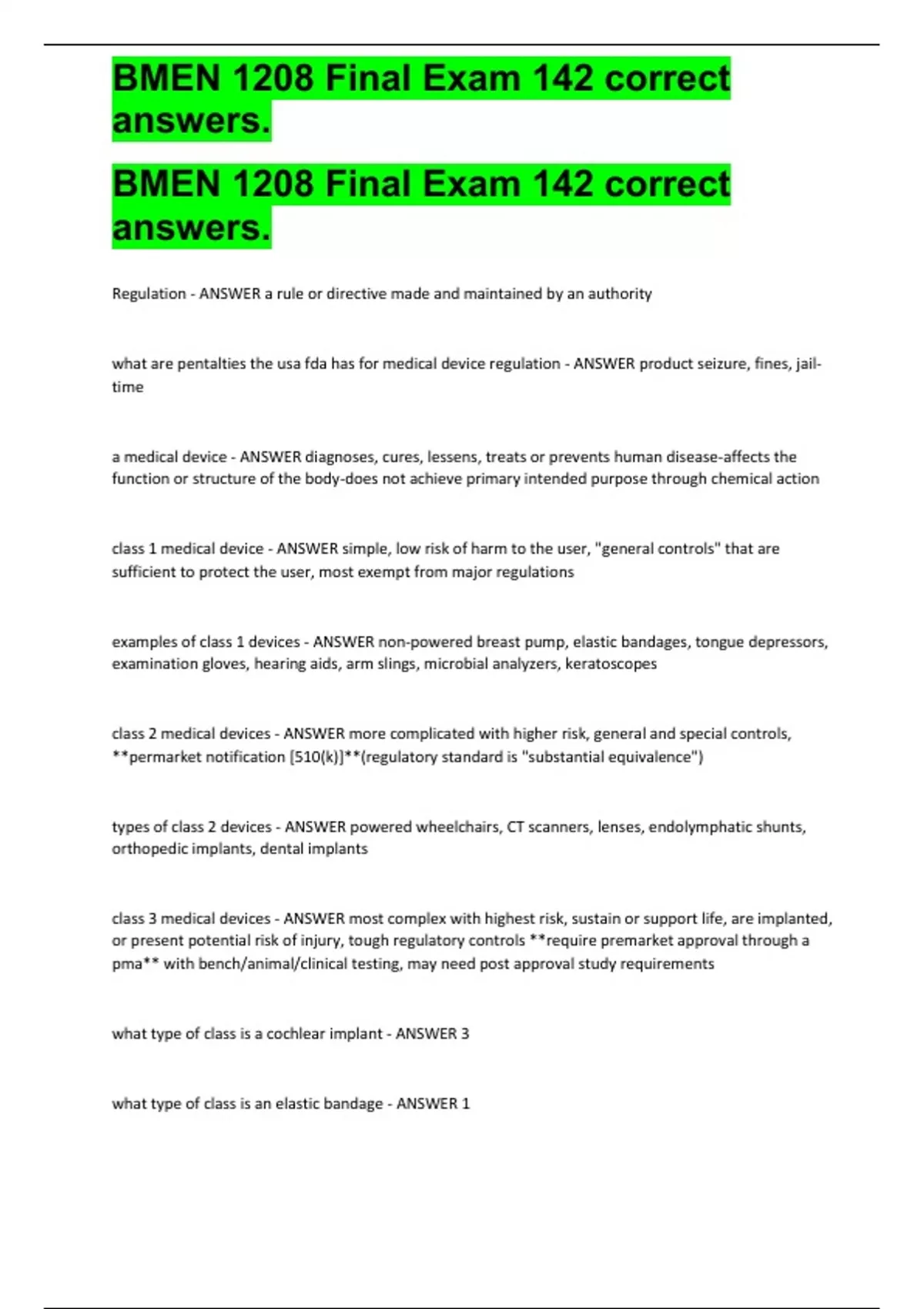 , BMEN 1208 Final Exam 142 correct