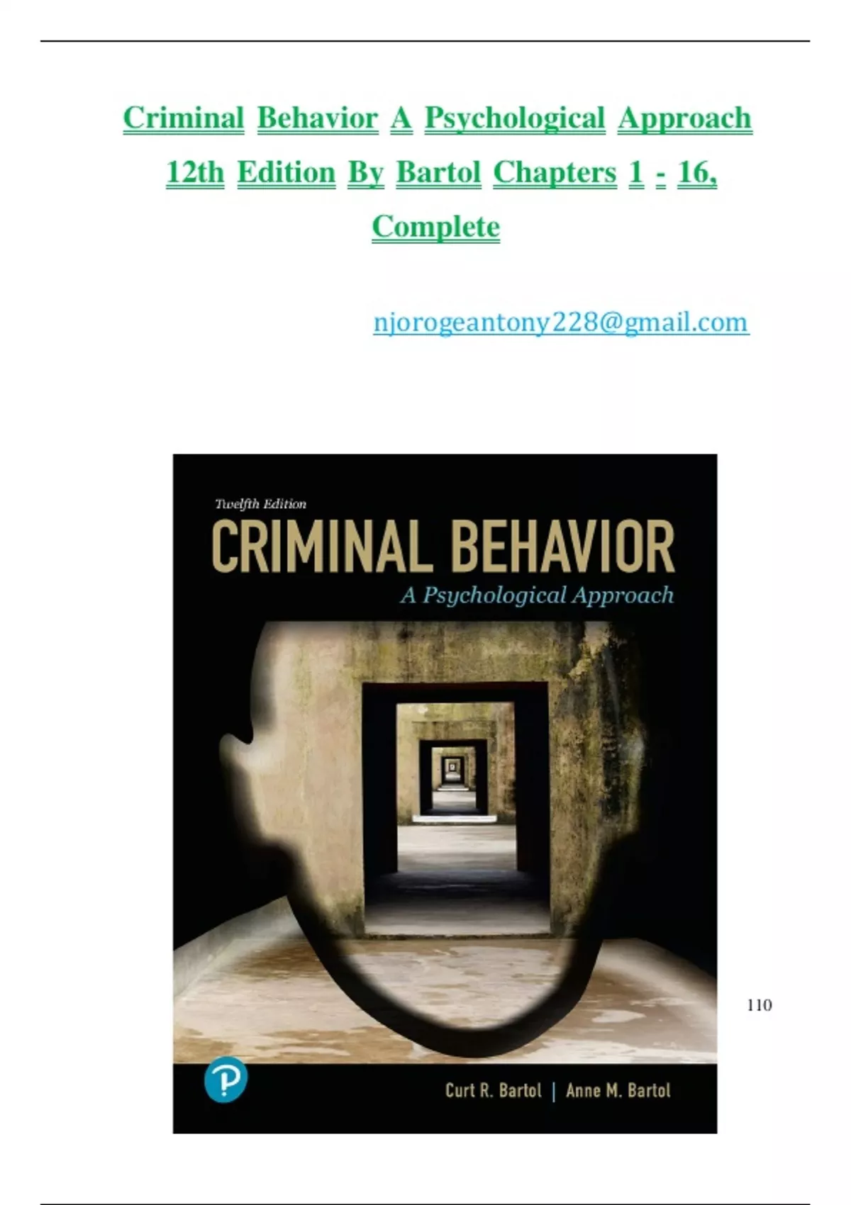 TEST BANK For Criminal Behavior: A Psychological Approach 12th Edition (Bartol) Chapters 1 - 16, Complete