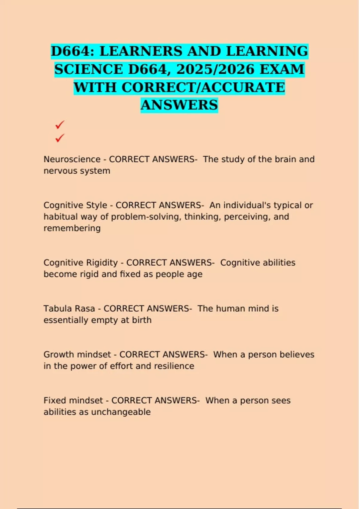 Fixed mindset - CORRECT ANSWERS- When a person sees