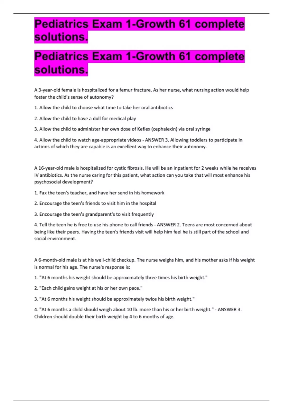 Pediatrics Exam 1-Growth 61 complete solutions. Pediatrics Exam 1-Growth 61 complete solutions. Pediatrics Exam 1-Growth 61 complete solutions.