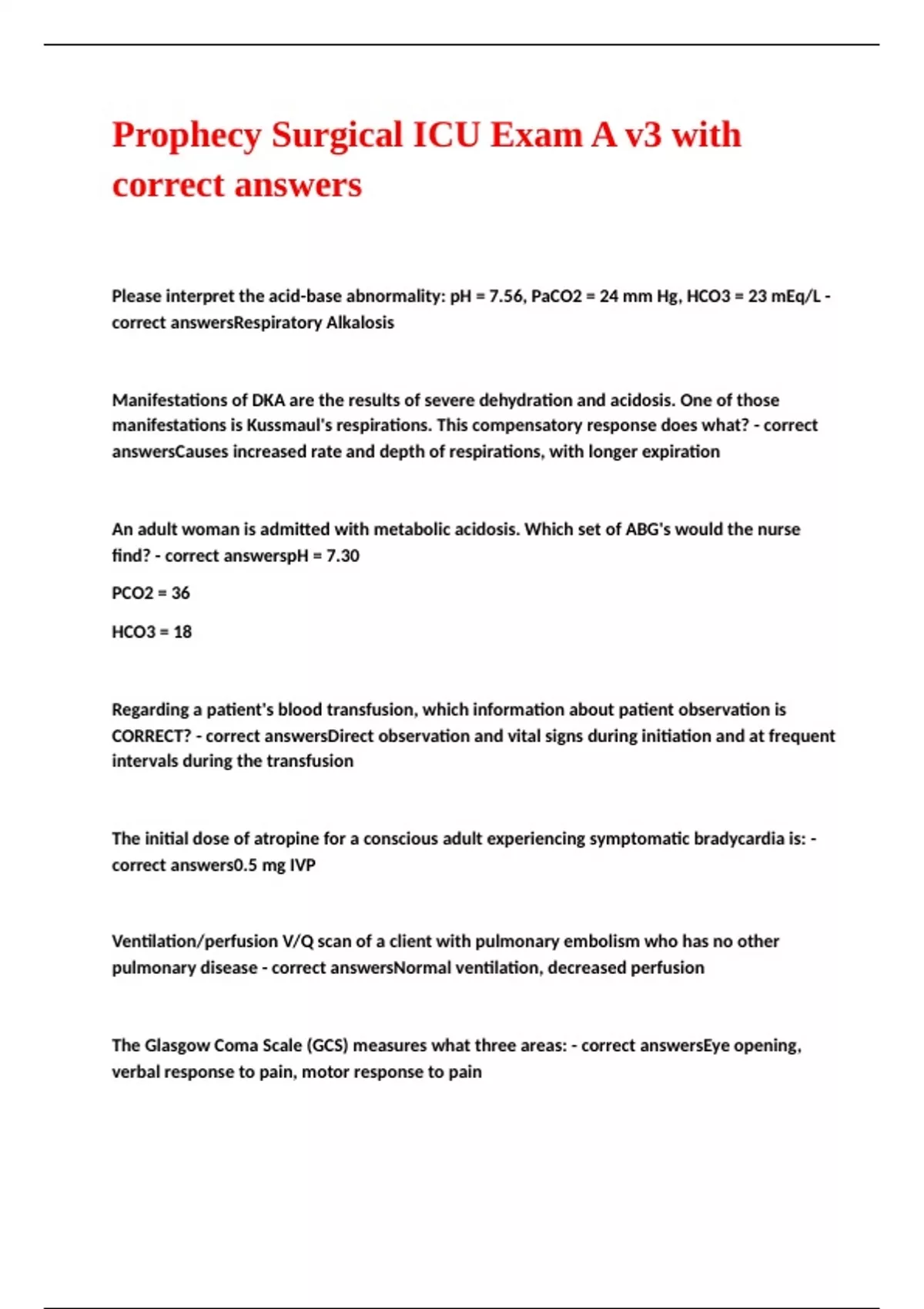 Prophecy Surgical ICU Exam A v3 with correct answers.
