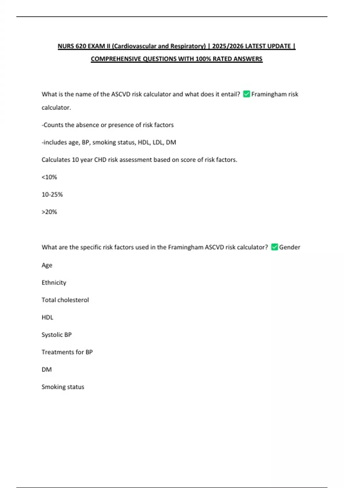 NURS 620 EXAM II (Cardiovascular and Respiratory) | 2025/2026 LATEST UPDATE | COMPREHENSIVE QUESTIONS WITH 100% RATED ANSWERS
