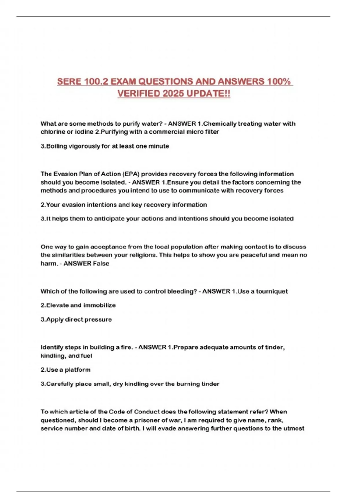 SERE 100.2 EXAM QUESTIONS AND ANSWERS 100% VERIFIED 2025 UPDATE!!...