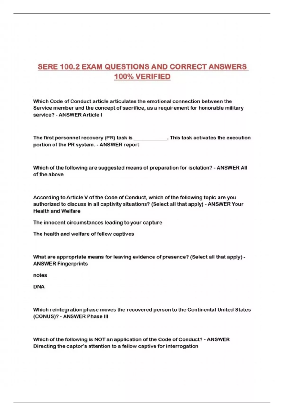 SERE 100.2 EXAM QUESTIONS AND CORRECT ANSWERS 100% VERIFIED