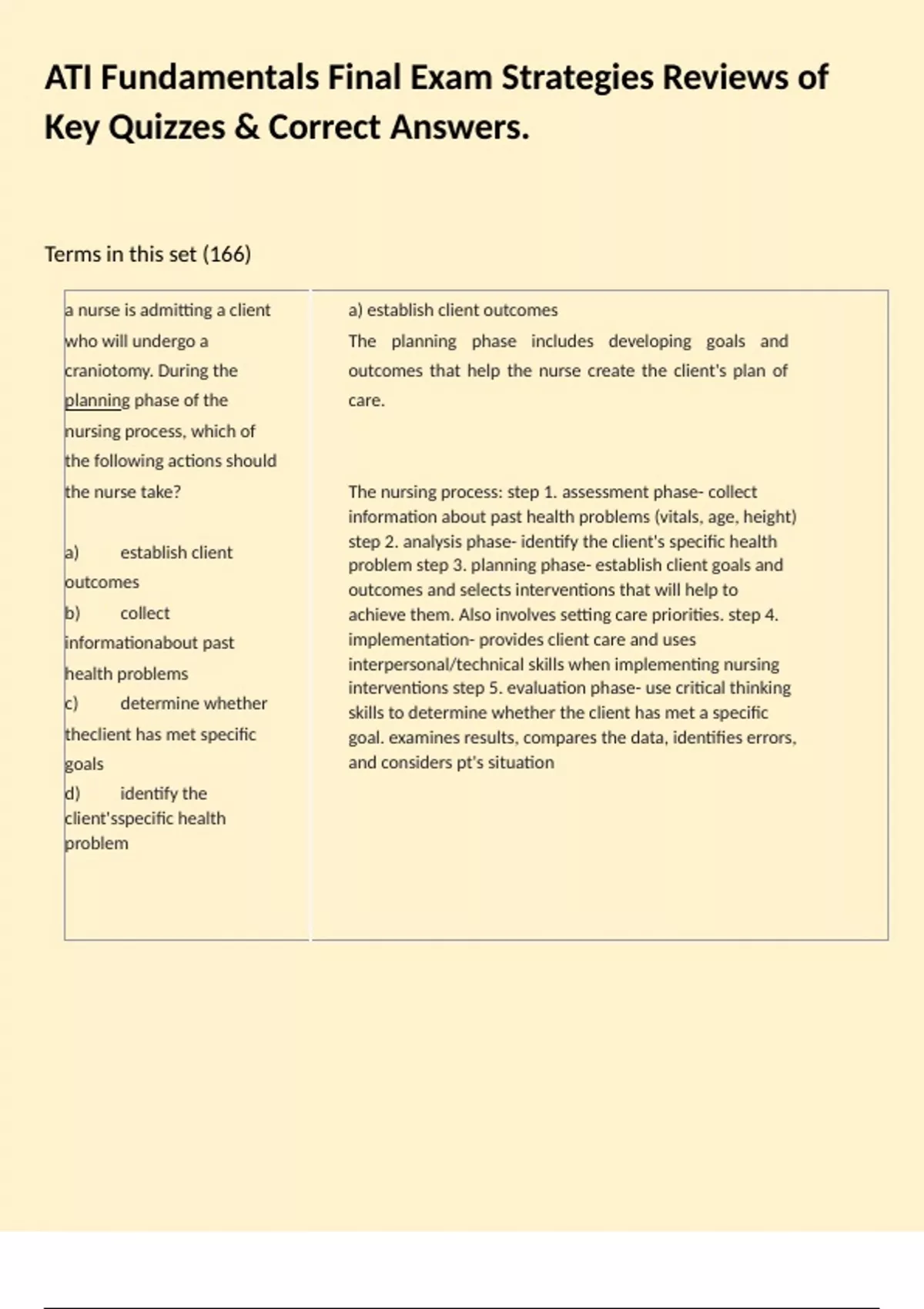 ATI Fundamentals Final Exam Strategies Reviews of Key Quizzes & Correct Answers.