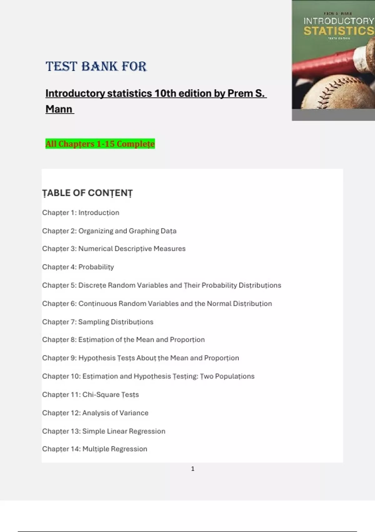 Introductory statistics 10th edition by Prem S.